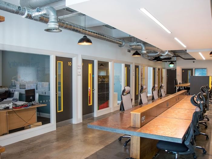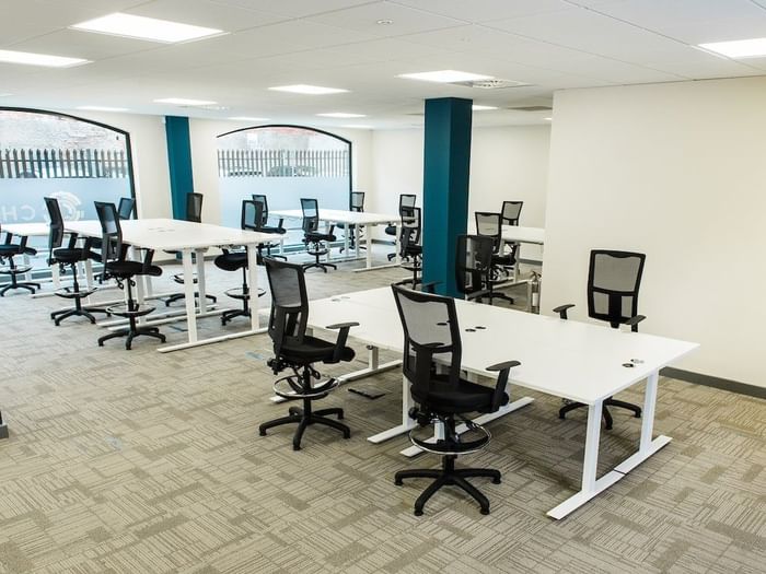 - Price for a monthly workstation in a dedicated open space: GBP £ 129 excluding charges / month