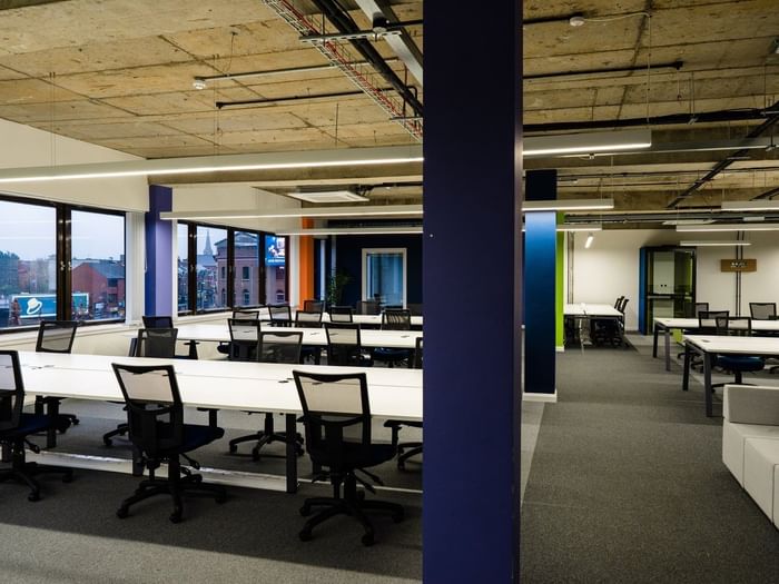 The services included in coworking spaces at Belfast are generally: Wi-Fi, furniture, meeting rooms, kitchen, cleaning and reception. 98% of spaces referenced on workin.space integrate these services into their monthly offer in 2025.