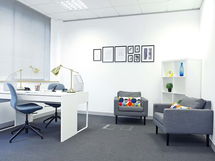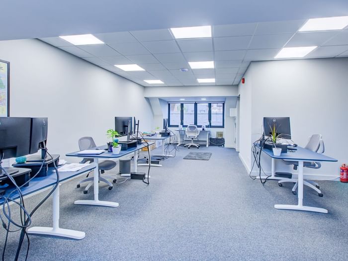 - Price for a monthly workstation in a private office: GBP £ 235 excluding charges / month