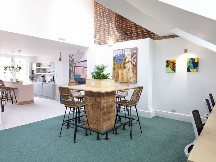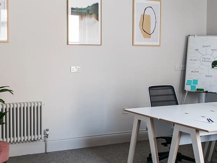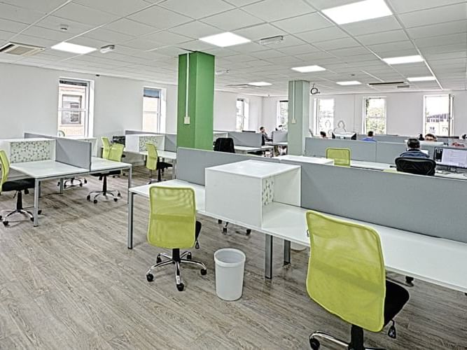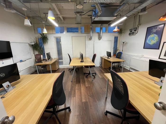 - Price for a monthly workstation in a private office: GBP £ 109 excluding charges / month