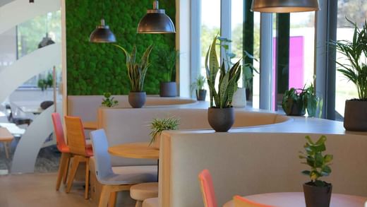Five floors of open-plan reception areas, office space, meeting rooms and conference suites enclose a beautiful ‘green-heart’ atrium, which fills the whole building with natural light.