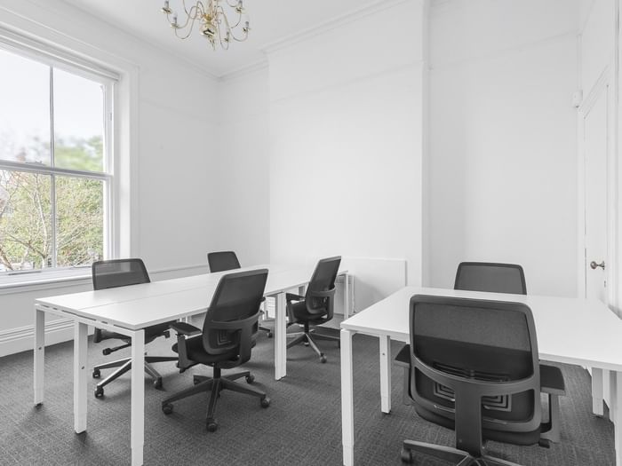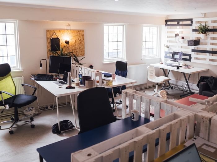 - Price for a monthly workstation in a private office: GBP £ 89 excluding charges / month