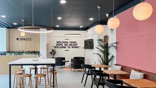 Work offices are located in the top five floors of one of the city’s premier office buildings. Designed for maximum breathing room, each floor is filled with natural light and comfortable furnishings.