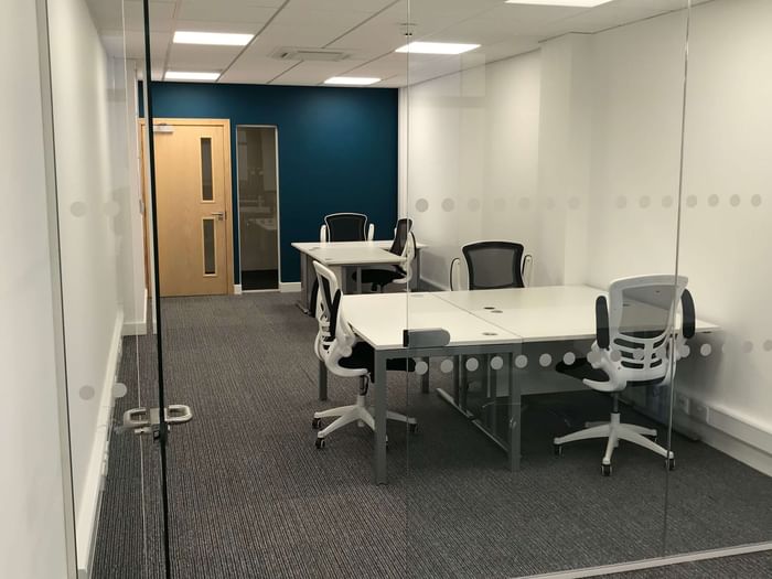 - Price for a monthly workstation in a private office: GBP £ 120 excluding charges / month