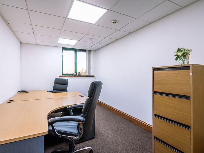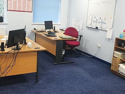 - Price for a monthly workstation in a private office: GBP £ 110 excluding charges / month