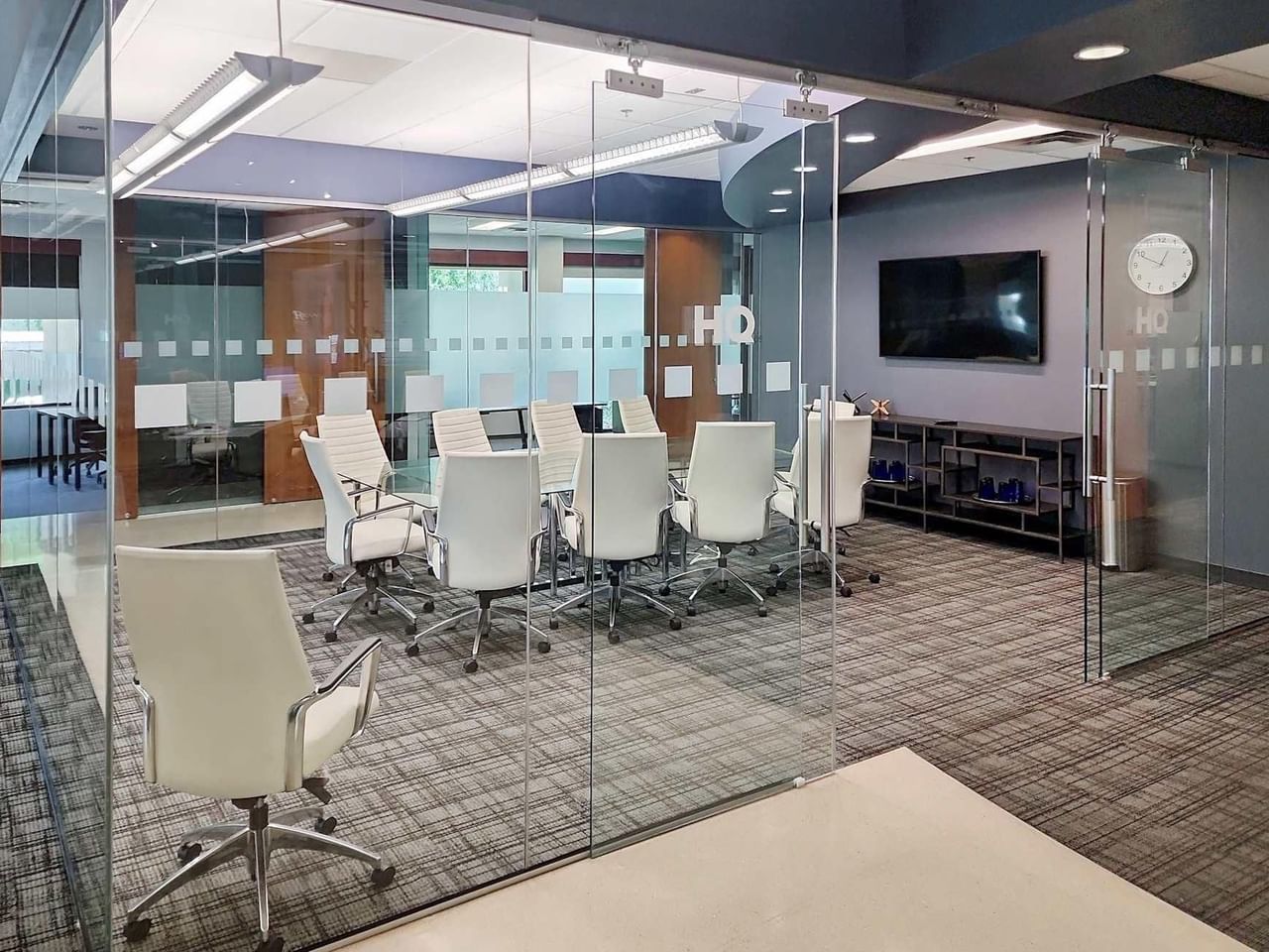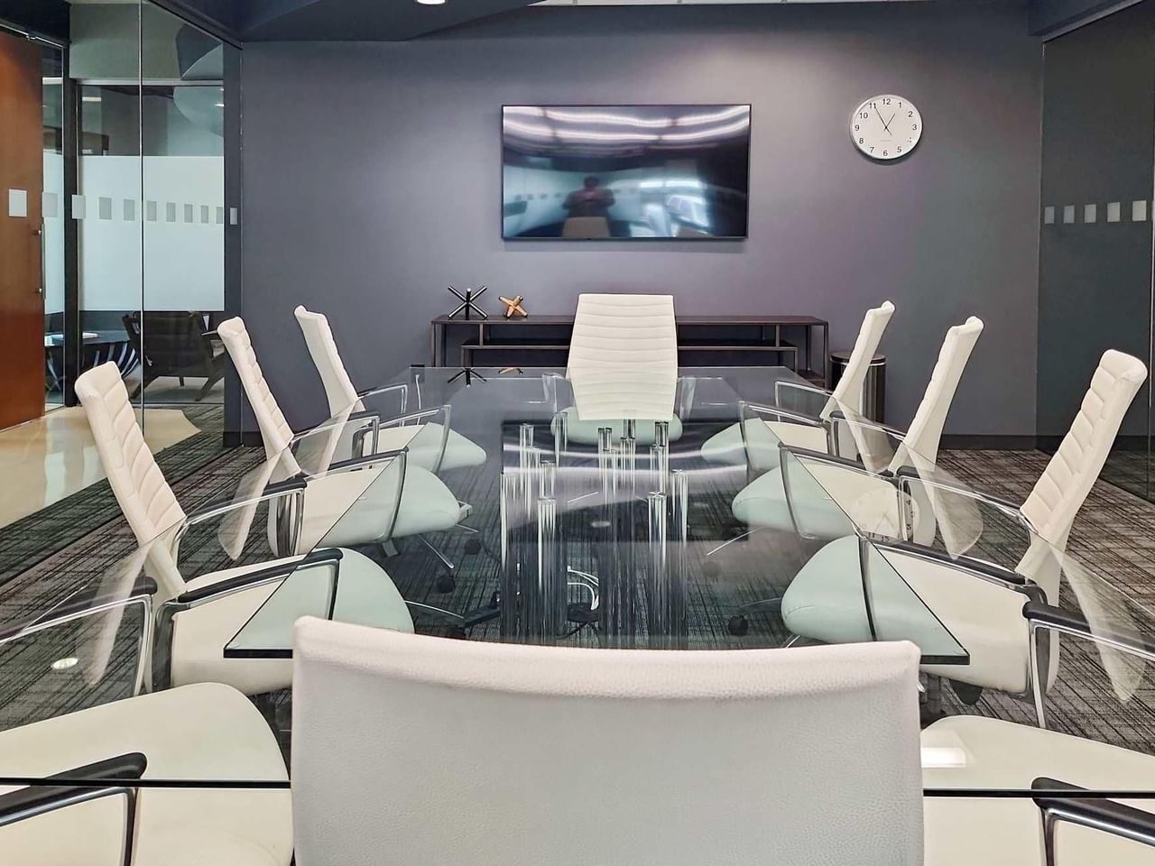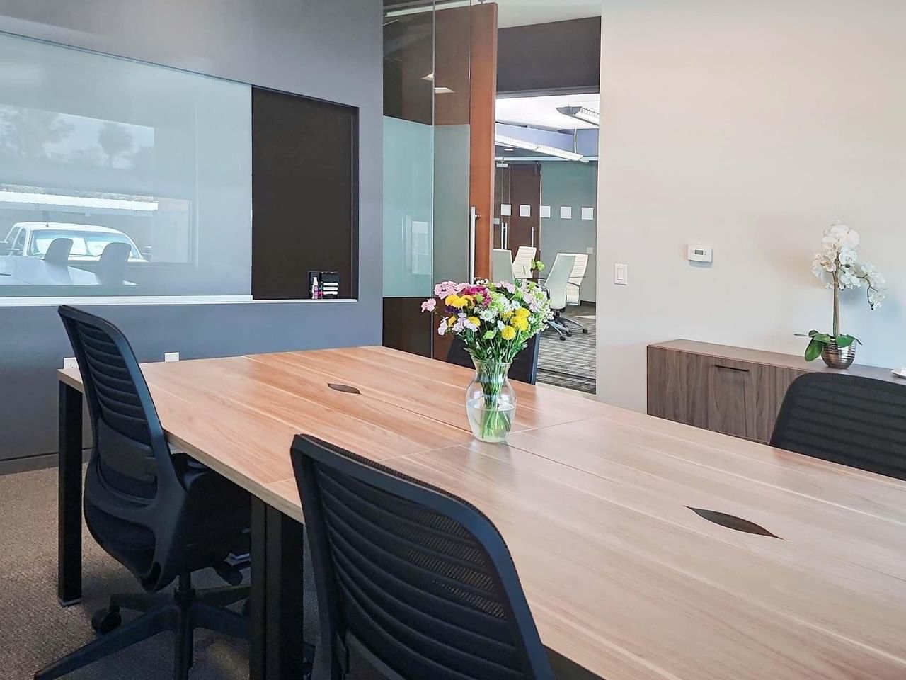 East Camelback Road is a professional office building: glass partitioning allows plenty of natural light to flood the interior, while the palm tree-lined road provides a neat, welcoming aesthetic on arrival.
