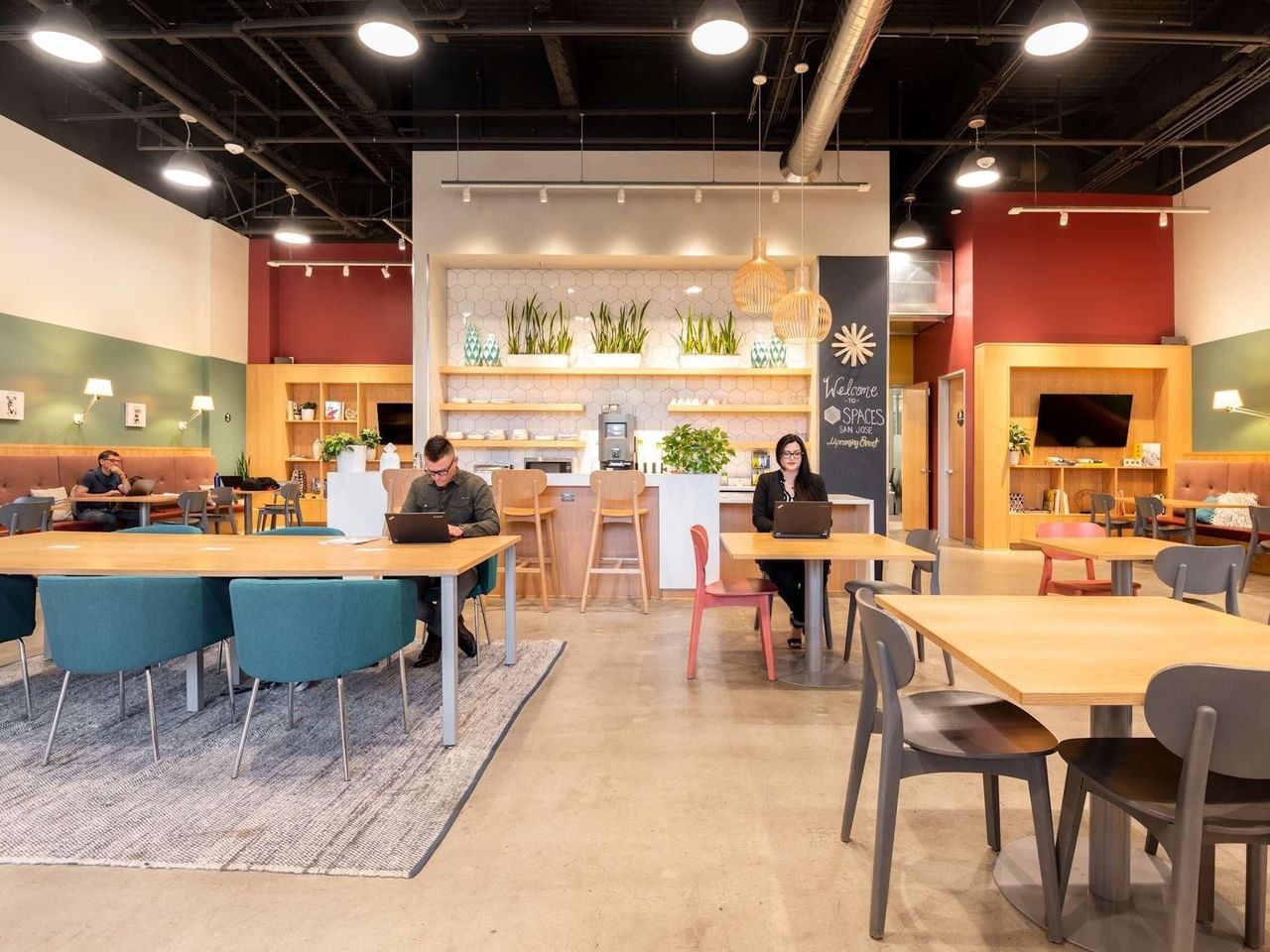 In addition to having WIFI access, the ability to reserve meeting rooms and access to common areas, Spaces 110 Plaza West has or offers: