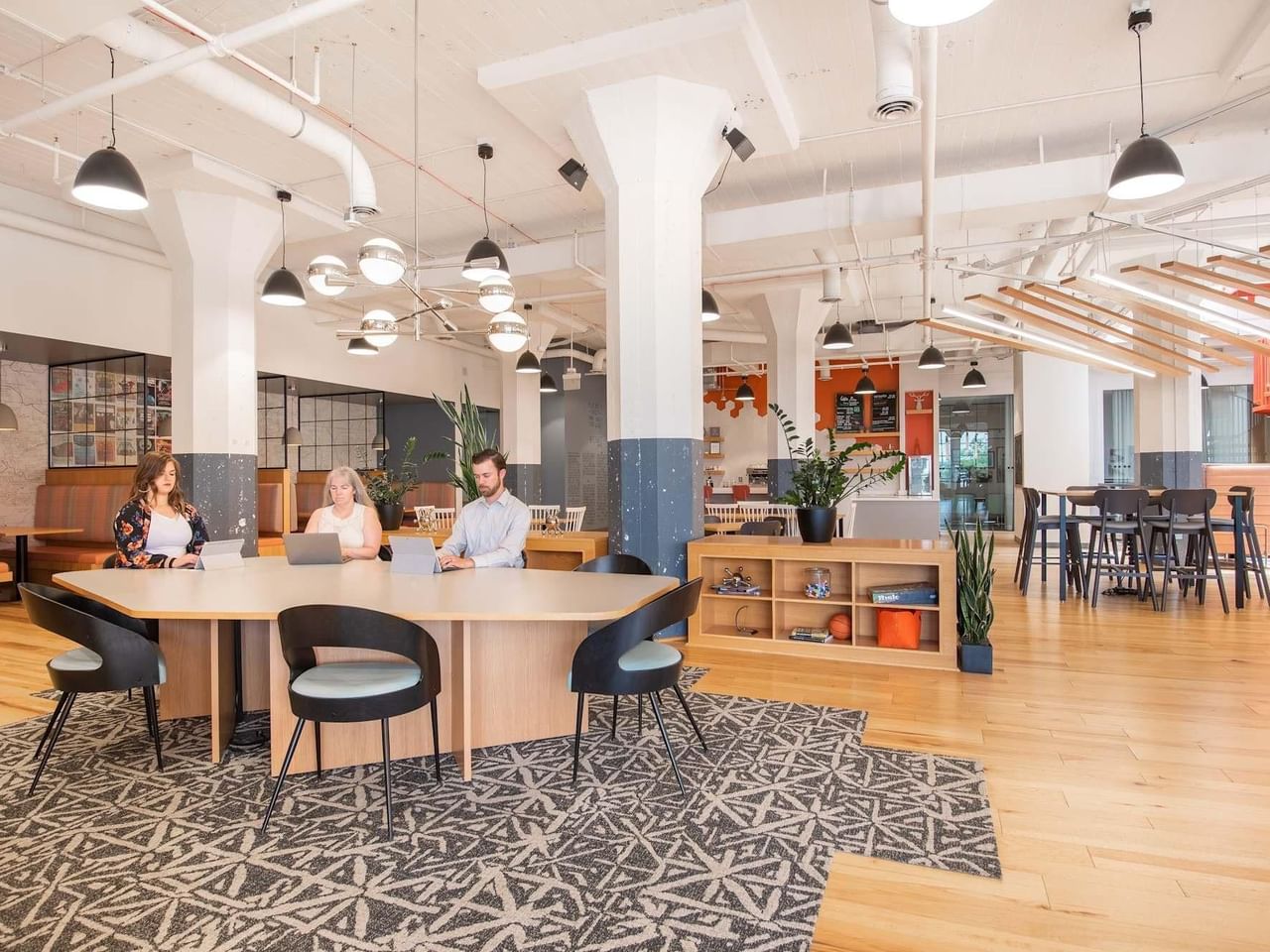 With three floors of tech-powered workspace, this former warehouse brings creatives, financial professionals, lawyers and oil and gas companies together in an engaging environment focused on work.