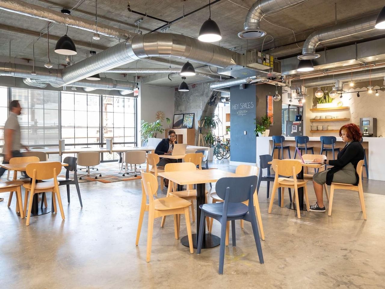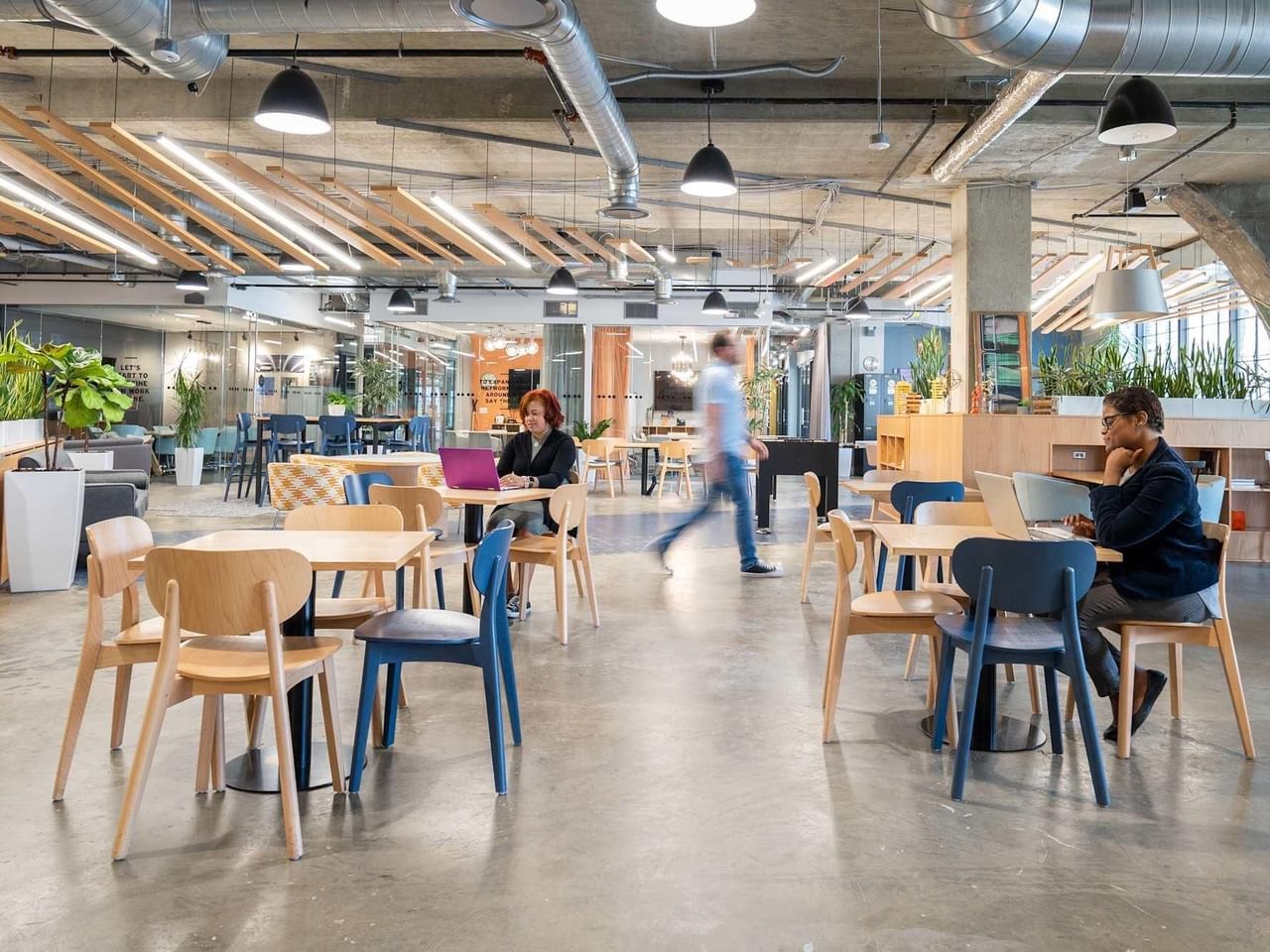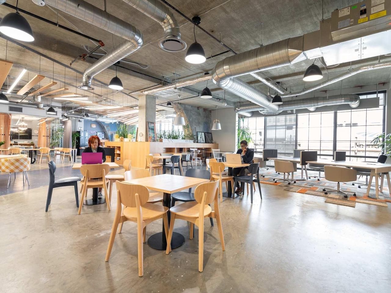 In addition to having WIFI access, the ability to reserve meeting rooms and access to common areas, Spaces Uline Arena has or offers:
