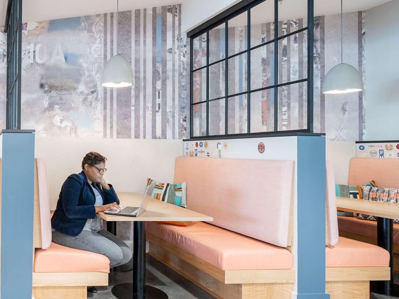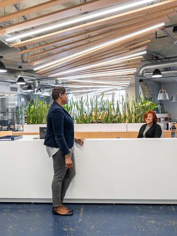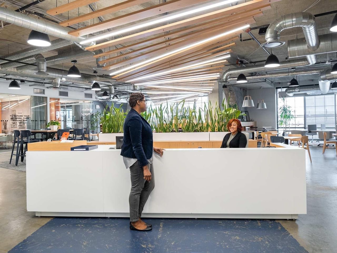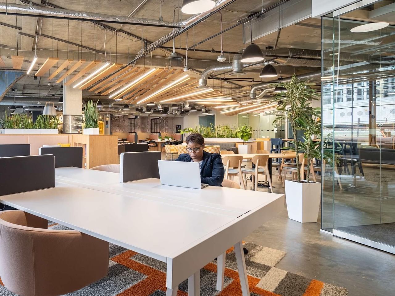 In addition to having WIFI access, the ability to reserve meeting rooms and access to common areas, Spaces Uline Arena has or offers: