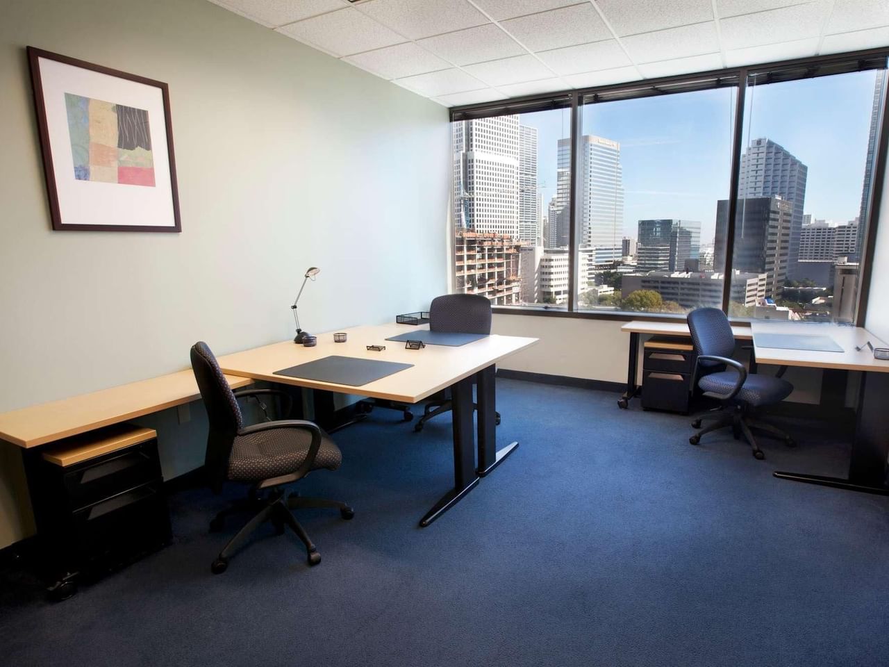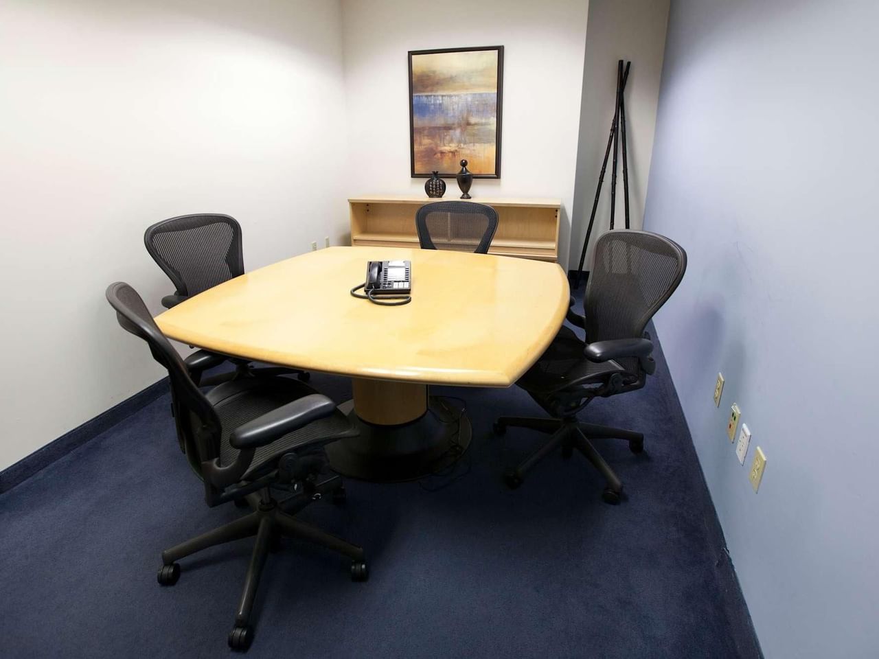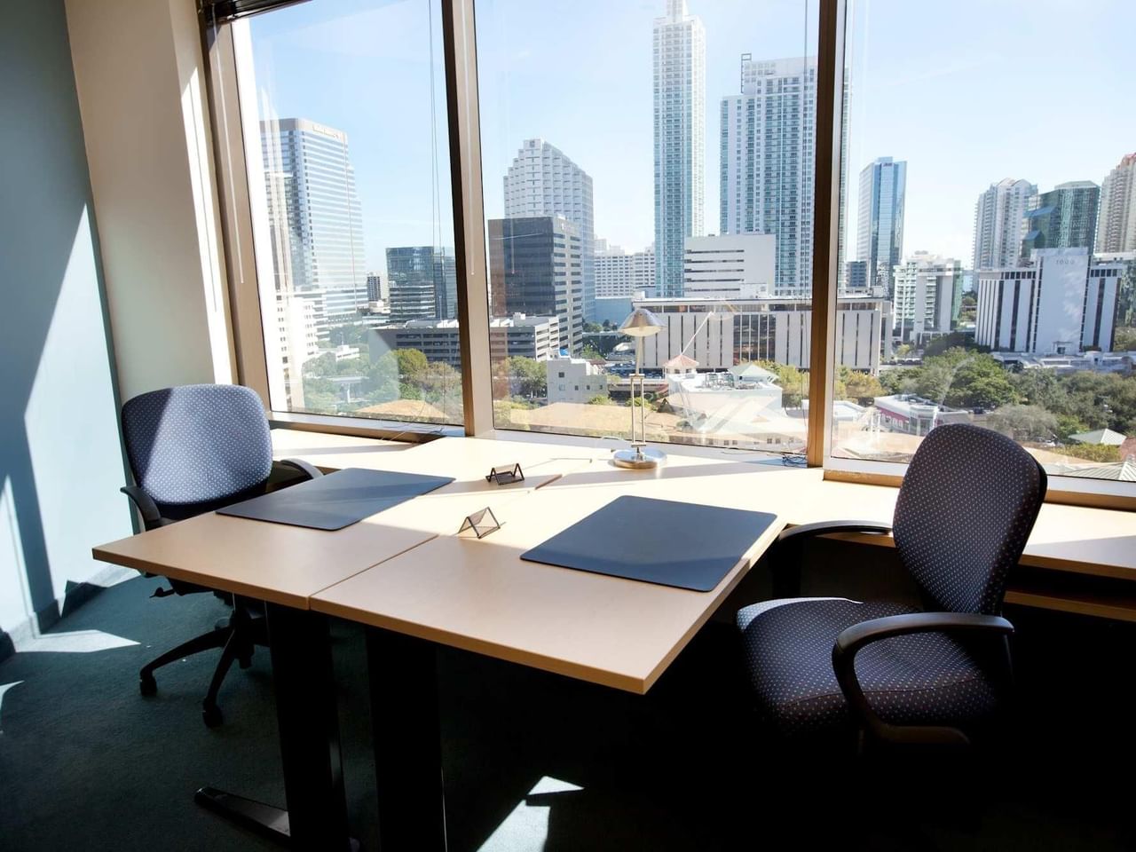Two of the spacious conference rooms boast a stunning view of the skyscrapers of downtown Miami, ideal for impressing clients.