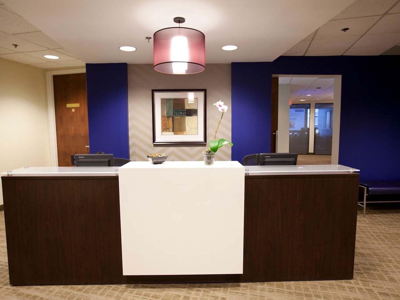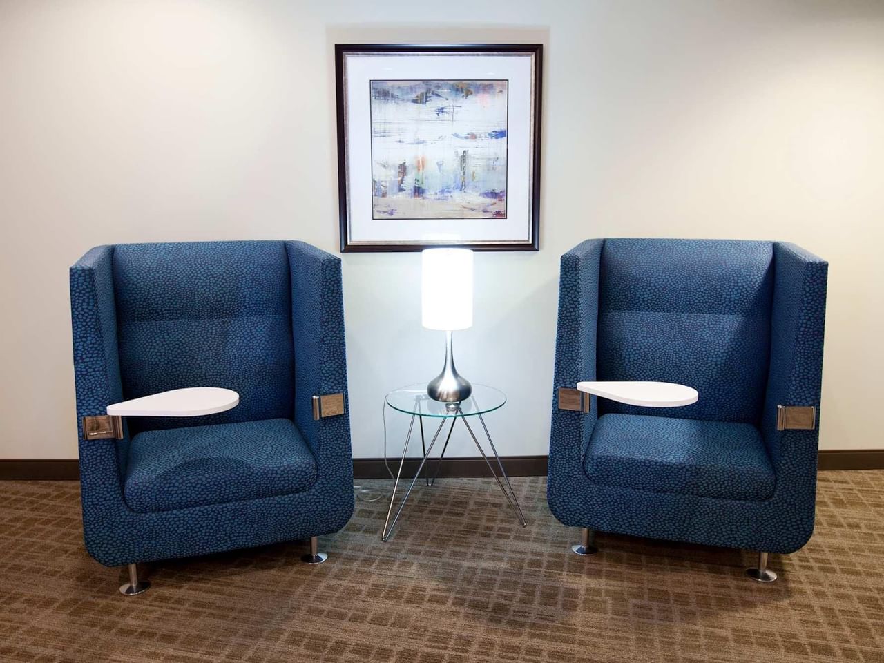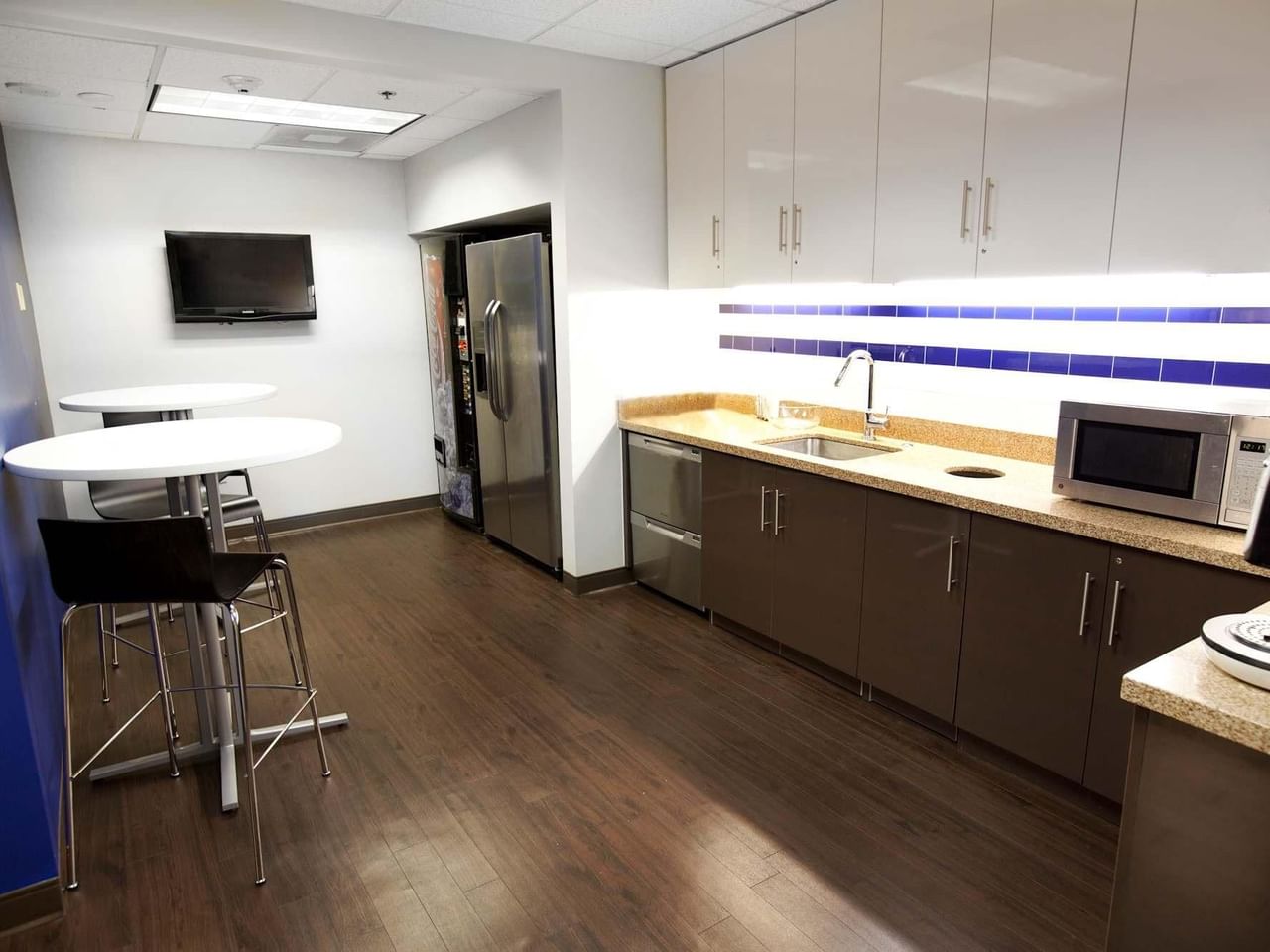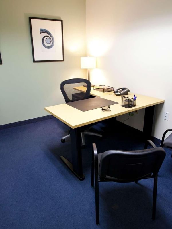 Two of the spacious conference rooms boast a stunning view of the skyscrapers of downtown Miami, ideal for impressing clients.