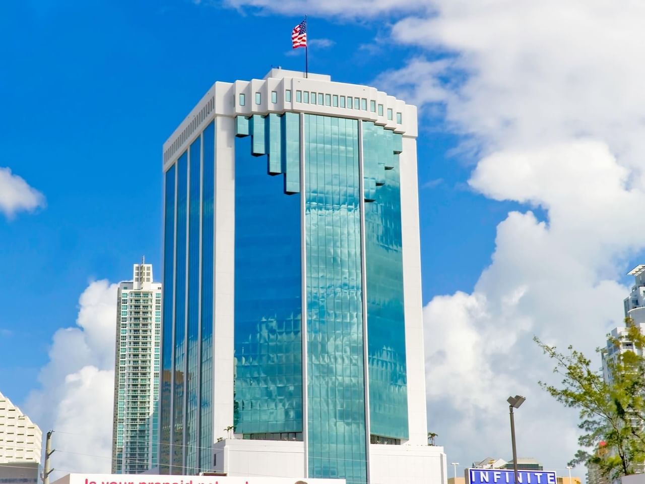 Brickell City Tower is a 33-floor marvel with a glass front and surrounded by palm trees, it stands out from the crowd on the Miami skyline.