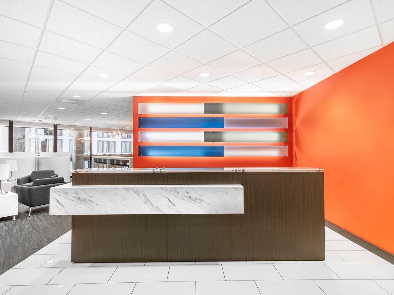 Modern, professional coworking areas, private offices and meeting rooms look out over the central atrium, while the onsite sandwich bar is perfect for a quick bite.