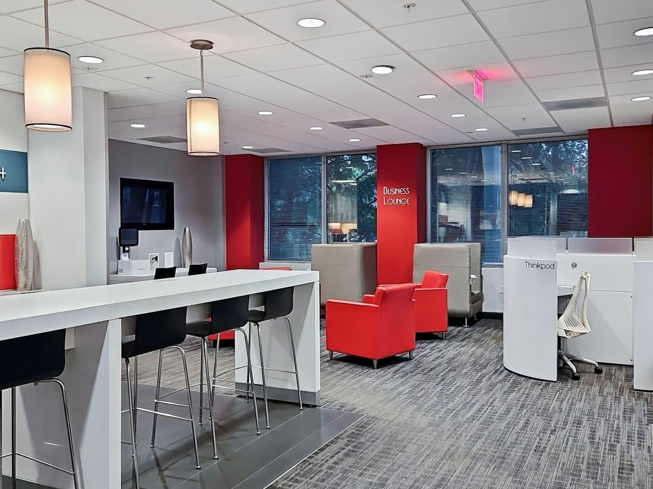In addition to having WIFI access, the ability to reserve meeting rooms and access to common areas, Regus Weston Pointe II has or offers: