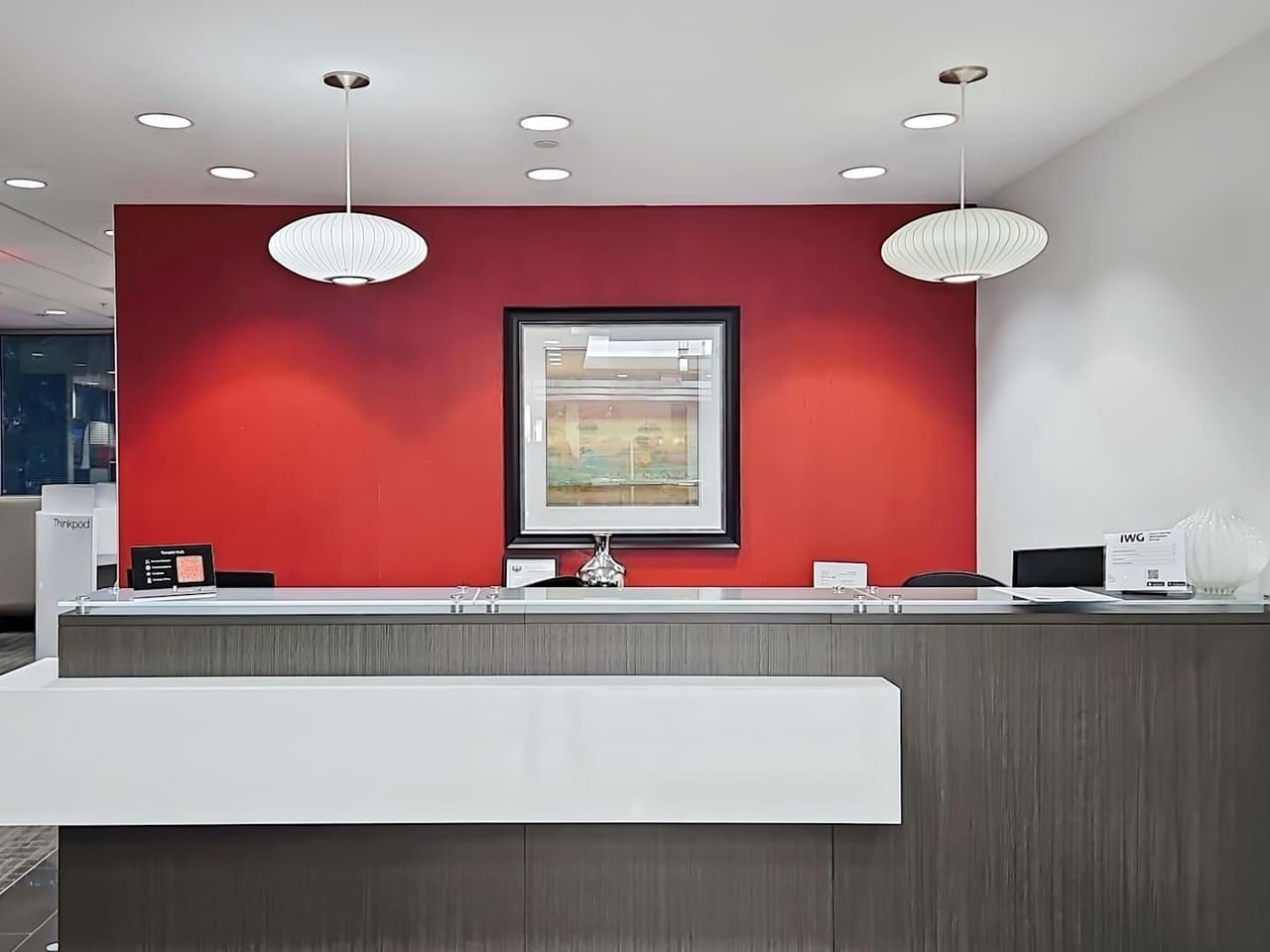 The building has a striking design and the two-storey lobby welcomes guests to the premium offices within.