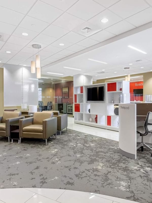 In addition to having WIFI access, the ability to reserve meeting rooms and access to common areas, Regus The Avenue Forsyth has or offers: