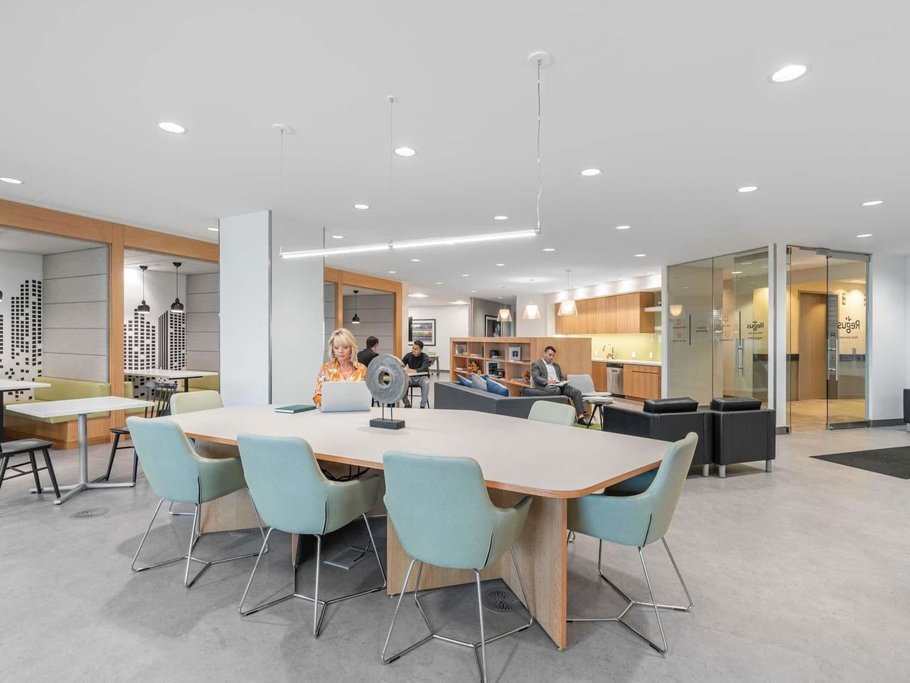 Large windows offer plenty of natural lighting, while an open-plan, on-site kitchen and coffee bar provides space for relaxed get togethers.