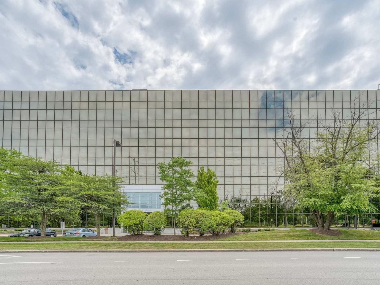 This modern, high-rise glass building reflects the trees which surround it to create a beautiful impression inside and out.