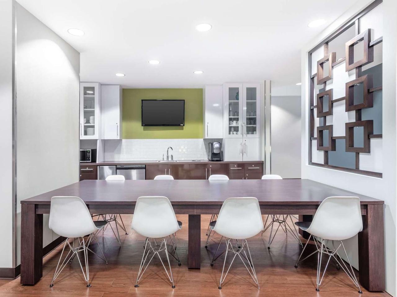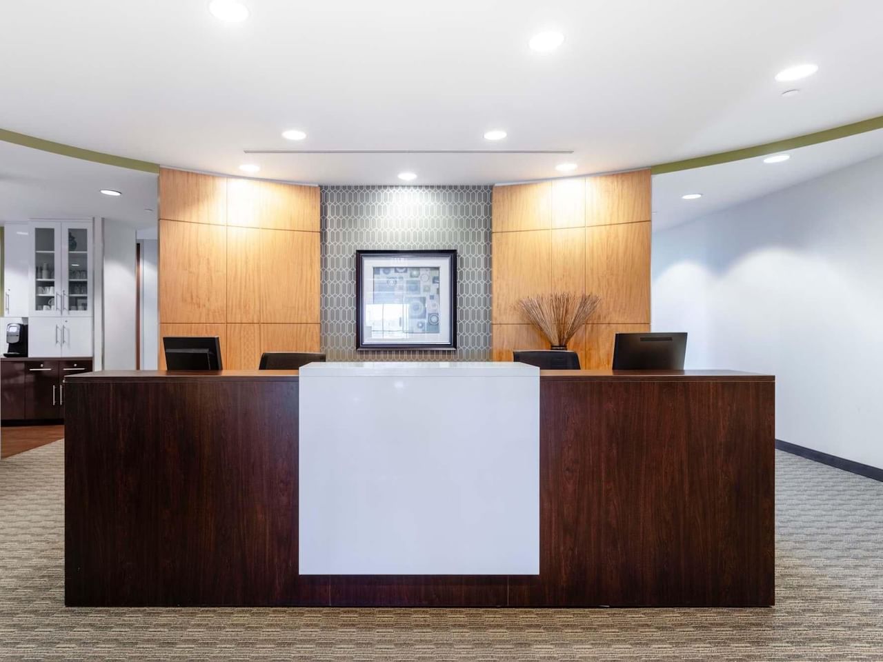 Welcome your visitors to this stylish venue, with its eucalyptus wood accents, on-site coffee bar and drop-in business lounge.