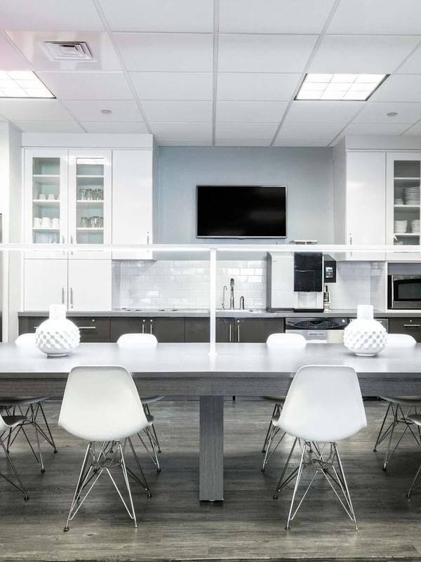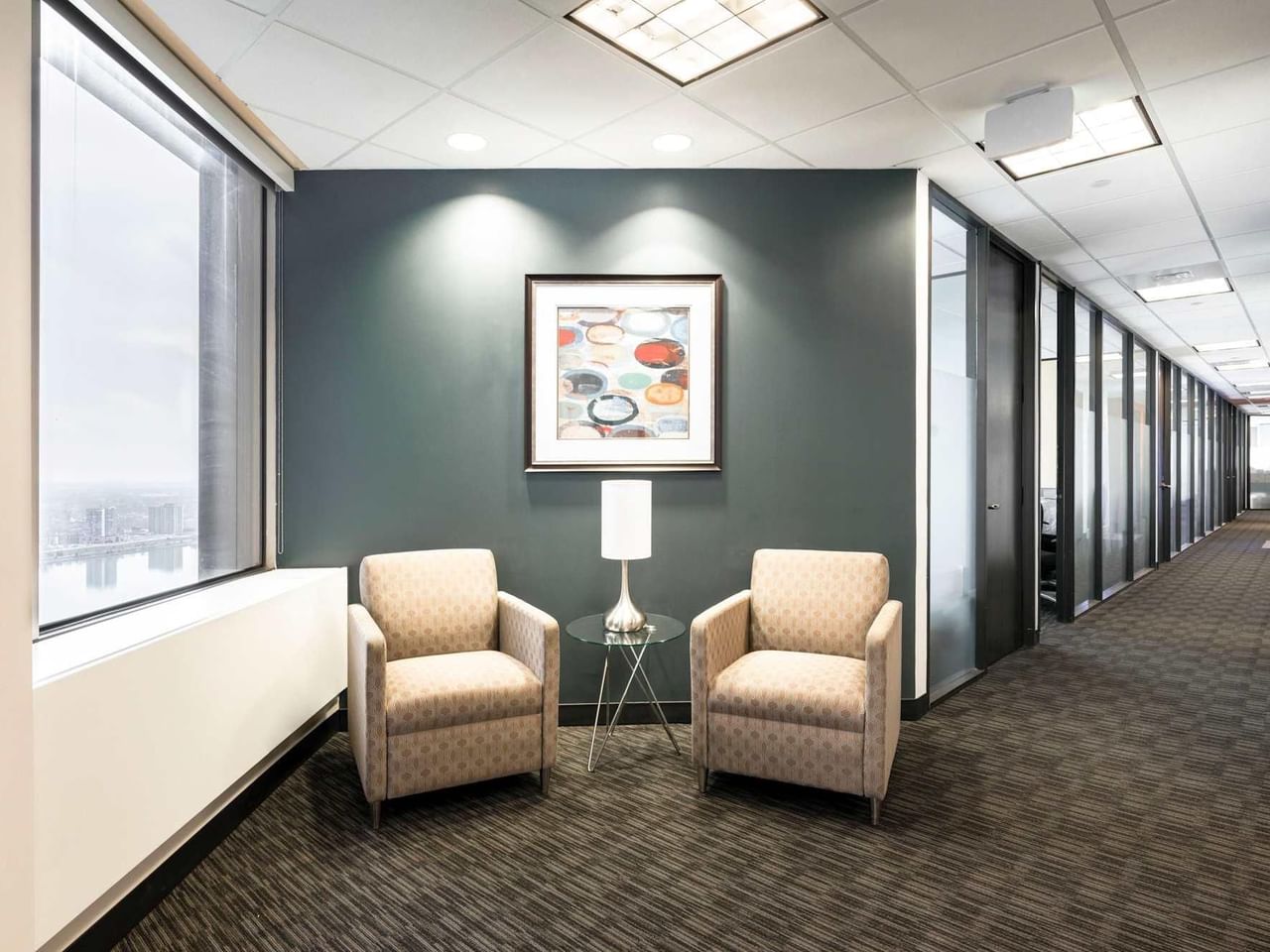 Enjoy stunning views across a riverfront setting and welcome clients into the tallest building in Michigan.