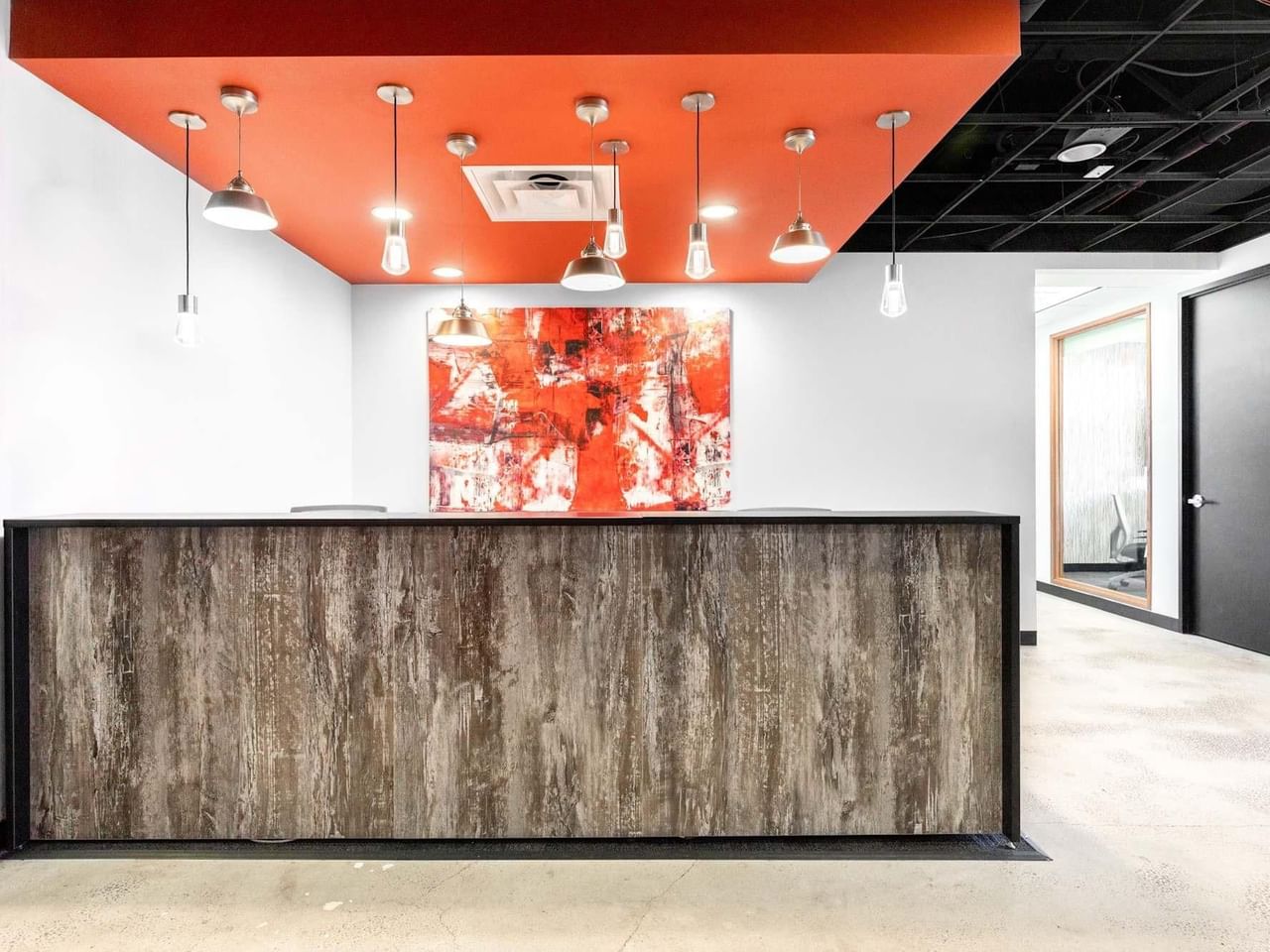 Interesting artwork and splashes of colour make this a congenial place to work, flooded with natural light.