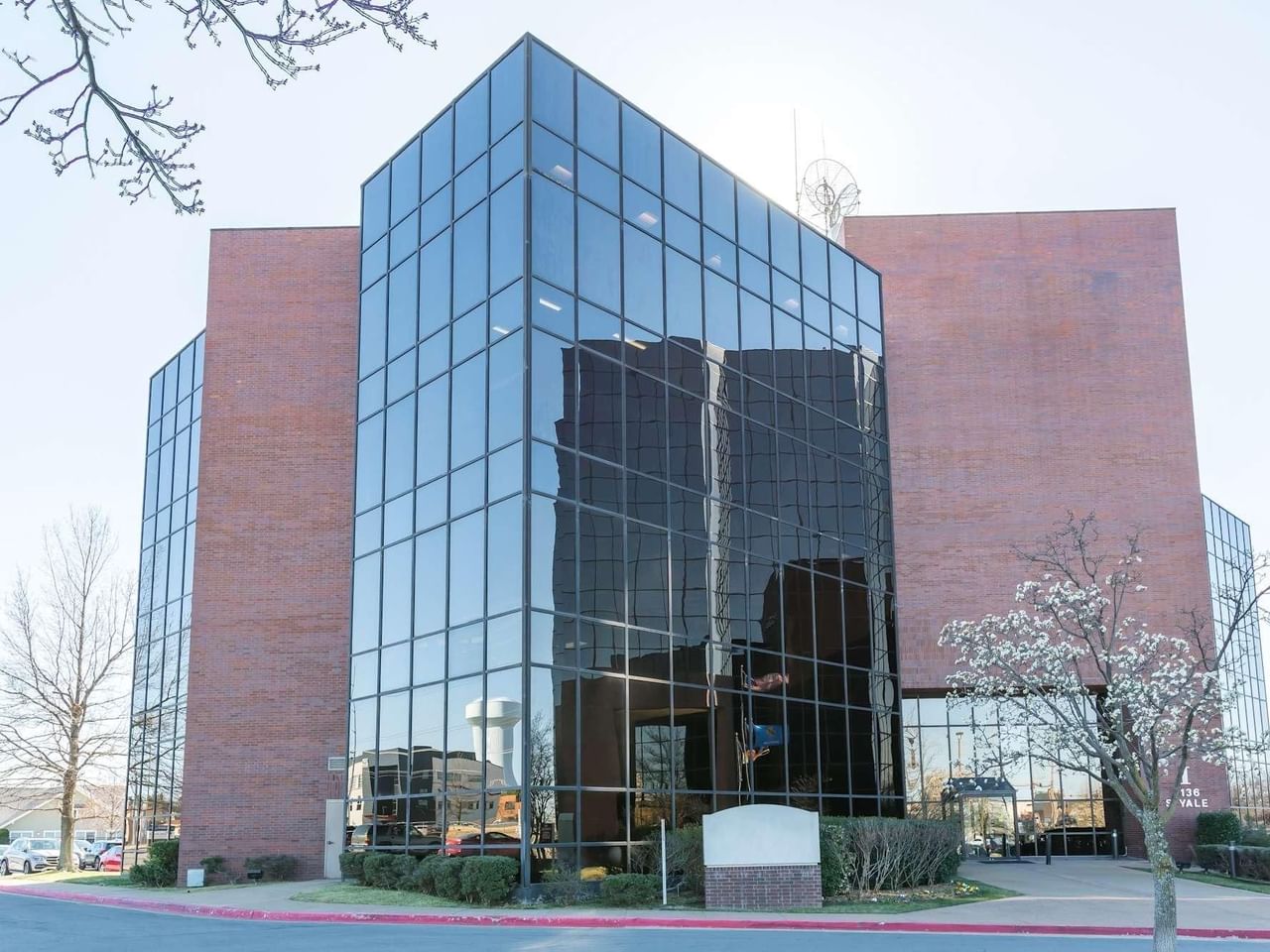 Tinted floor-to-ceiling windows give a striking impression from the outside while allowing natural light to flood through the five floors.