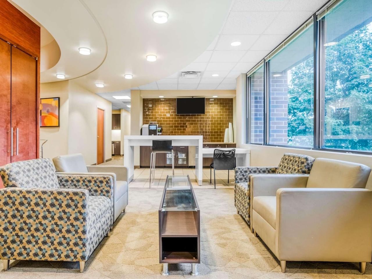 The modern brick design gives a professional first impression, while contemporary interiors appeal to a variety of forward-thinking companies.