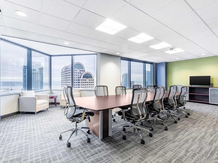 | Seattle | Shared office, private office, flexible workspace | Conference rooms, rooftop decks, event space |