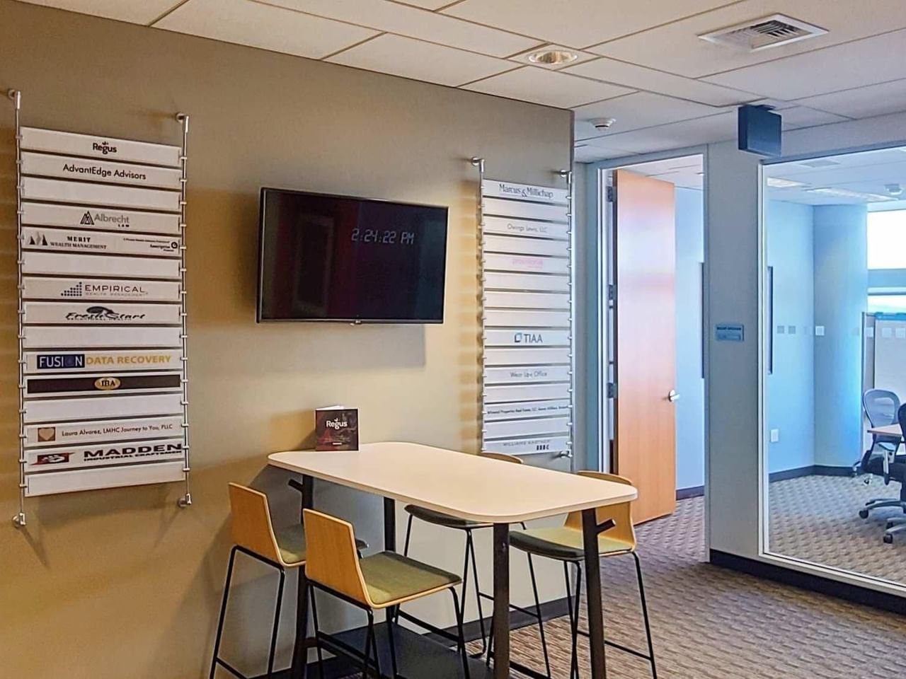 In addition to having WIFI access, the ability to reserve meeting rooms and access to common areas, Regus Wells Fargo Center has or offers: