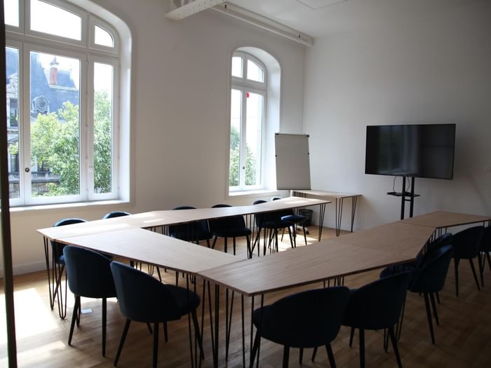 - State-of-the-arttechnological equipment: video screen, videoconferencing, high-speed wifi, flipchart.