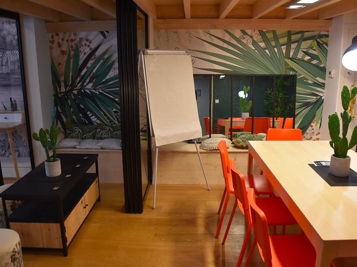 Don't forget ancillary amenities, such as the possibility of ordering a coffee worthy of the Rue du Bras de Fer in Nantes (to limit yawns) or access to lounge areas for debriefing in small groups. The fully-equipped rooms also reassure you about logistical organization, so you don't have to improvise an overhead projector with a flashlight and a white tablecloth.