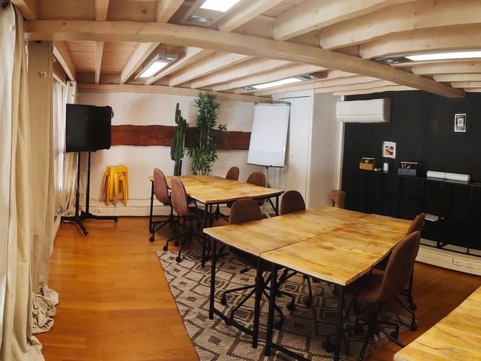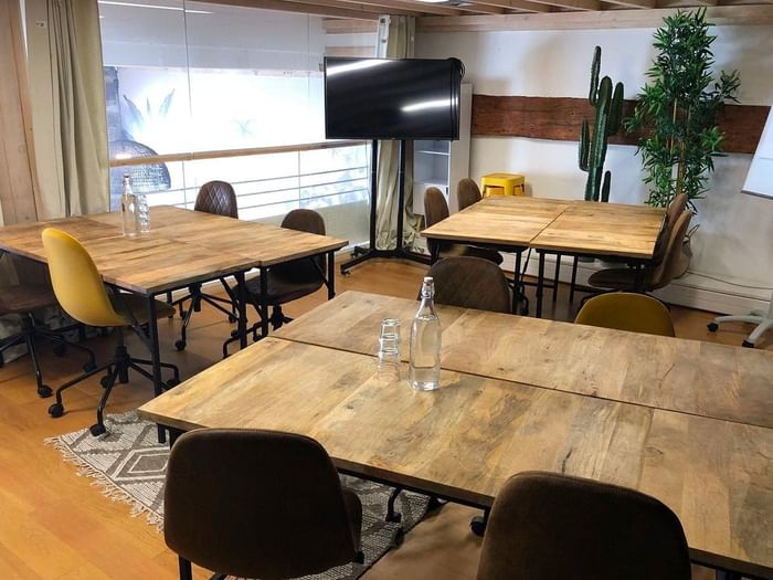 - Flexibility: rooms can be adapted to any configuration (square, U-shaped, theater, cabaret... even for creative minds).