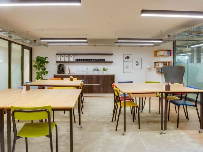 - Modular spaces seating 7 to 20: perfect for team building, interactive workshops, lunchtime plenary sessions, afterwork joke contests.