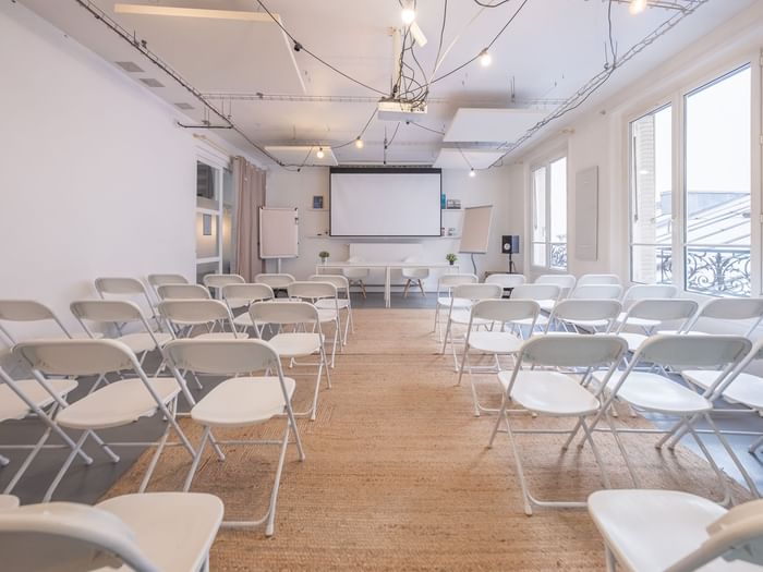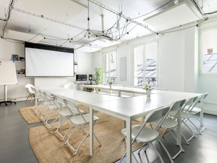 In the 17th arrondissement, a number of modular meeting rooms offer a range of formats, from intimate settings for 2 or 4 people to spaces that can accommodate up to 50 employees. Avoid the oversized room for three participants, so as not to lose energy in the empty space. An experienced man will tell you: "better tight and motivated than lost in the scenery".