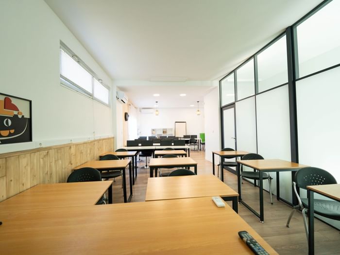 - Equipment available: video projector, wifi, air conditioning, whiteboard, etc.