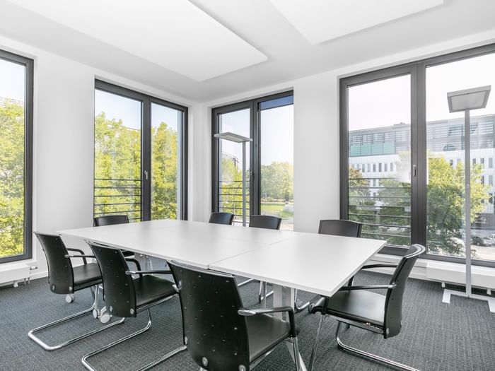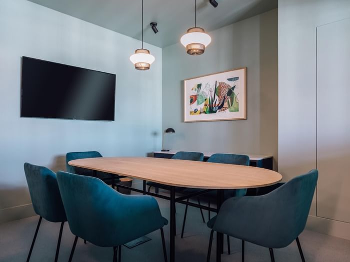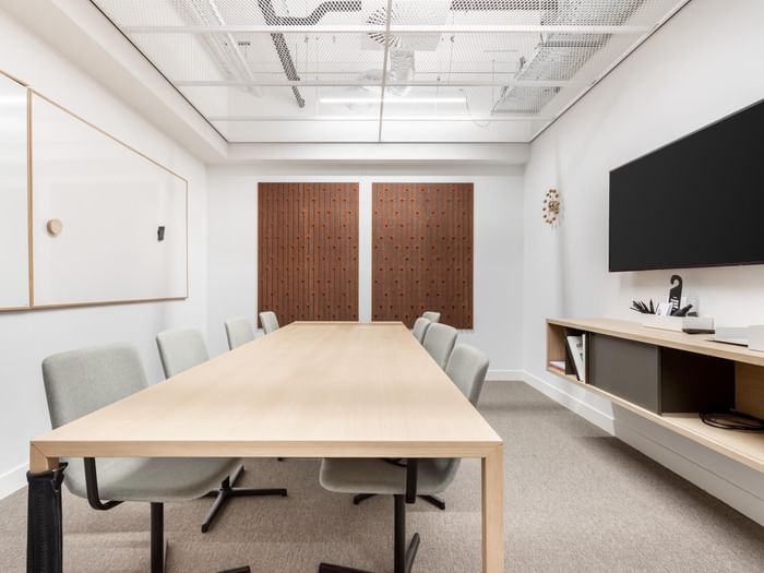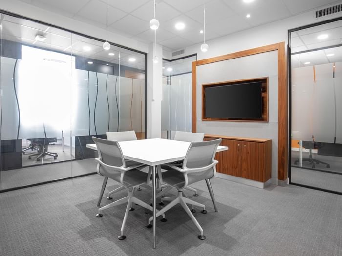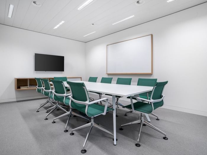 - Classic meeting rooms: Boardroom tables, ergonomic chairs, and screens designed for detailed presentations.