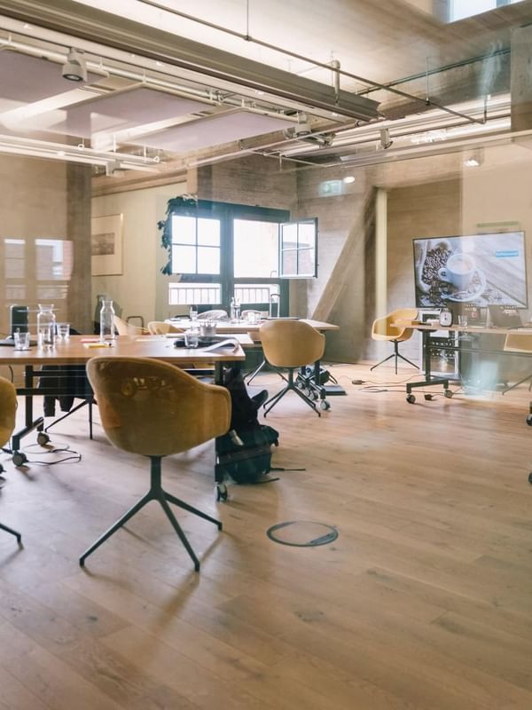 En el interior, los amigos de la cultura moderna de oficinas y conferencias encontrarán aquí su hogar profesional.