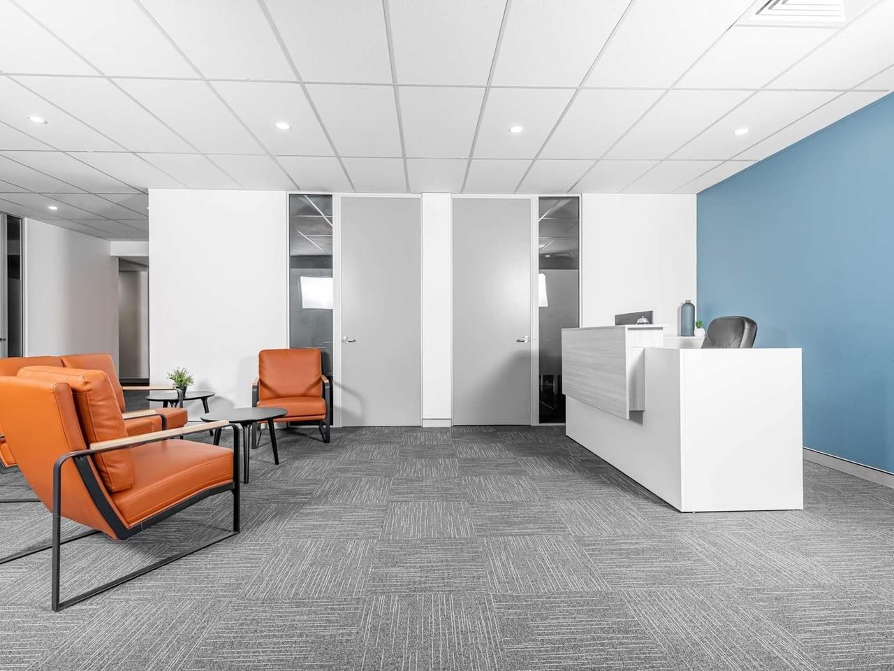 El moderno interior ofrece un entorno de trabajo profesional y relajado, con amplias zonas de descanso y salas de reuniones disponibles para su uso en cualquier momento.