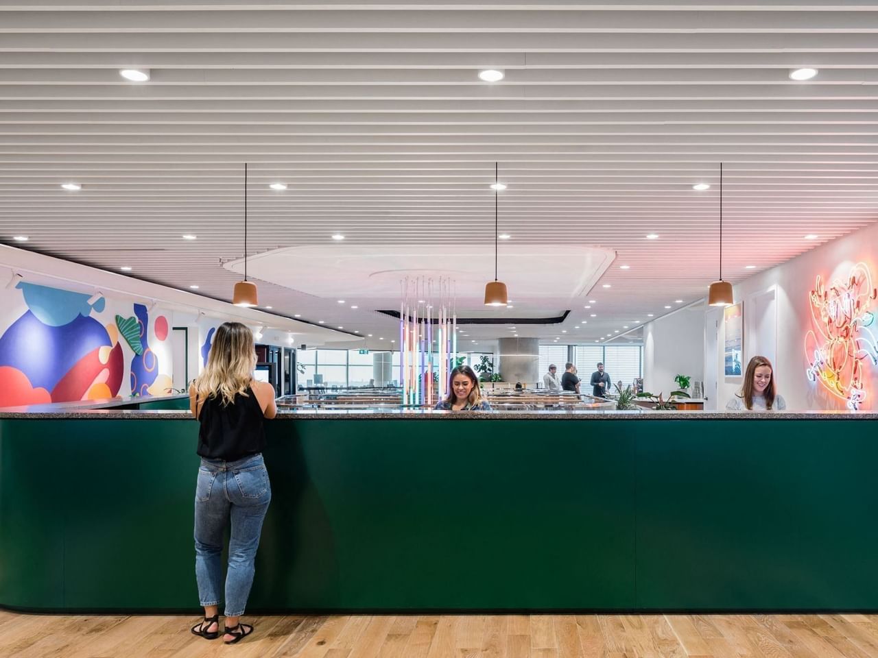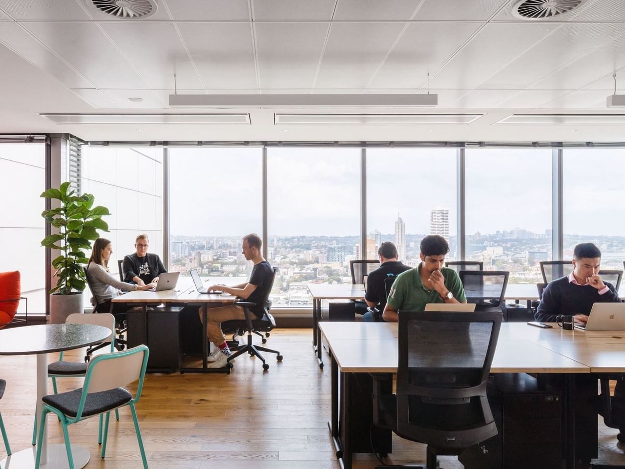 En las plantas 26 a 28 de este rascacielos de última generación, las oficinas compartidas de WeWork en el CBD de Sídney causan una primera impresión impactante.