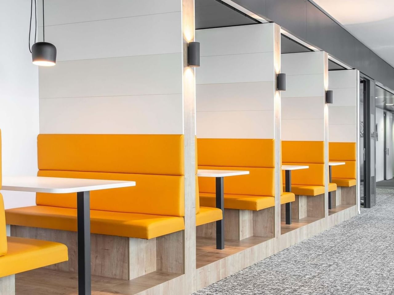 Concéntrese en un espacio de oficinas bellamente diseñado o relájese en el salón con un café del bar del edificio.