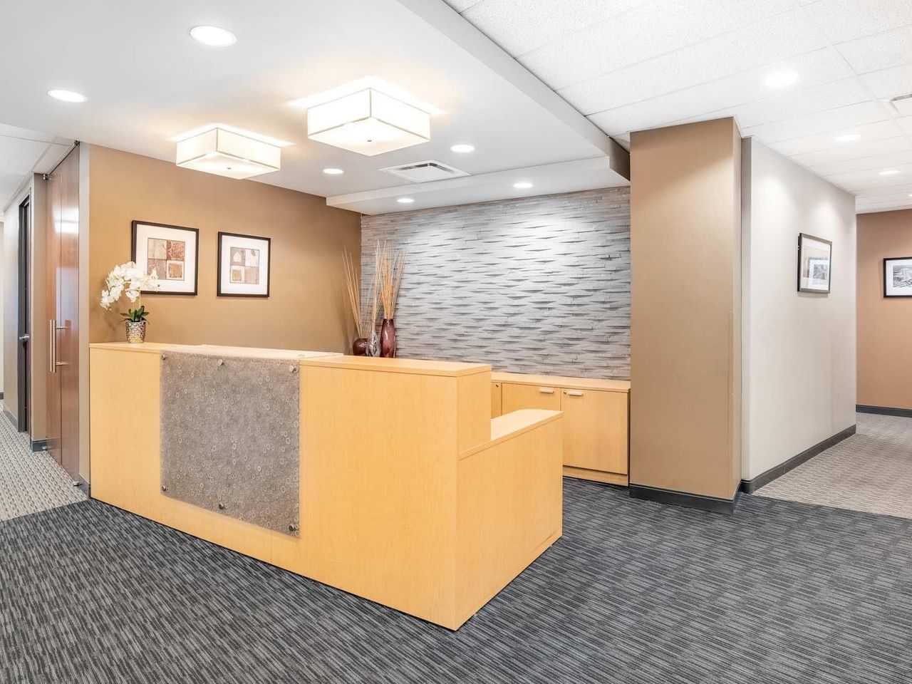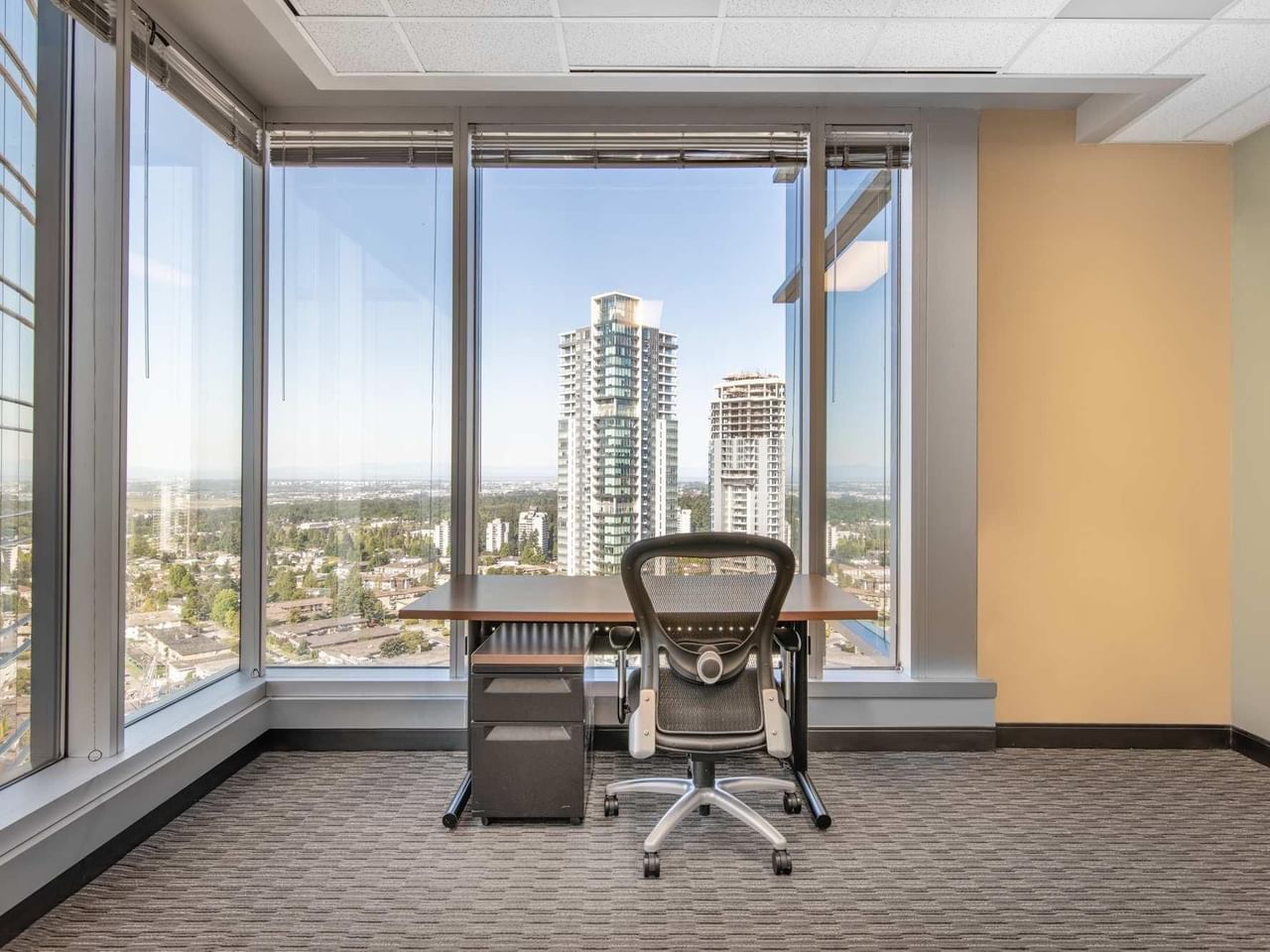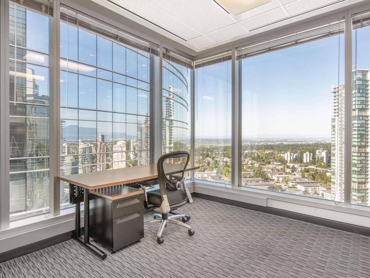 Desde nuestras oficinas de MetroTower, los ventanales ofrecen vistas de los suburbios y el espacio es tranquilo, con un moderno diseño interior.