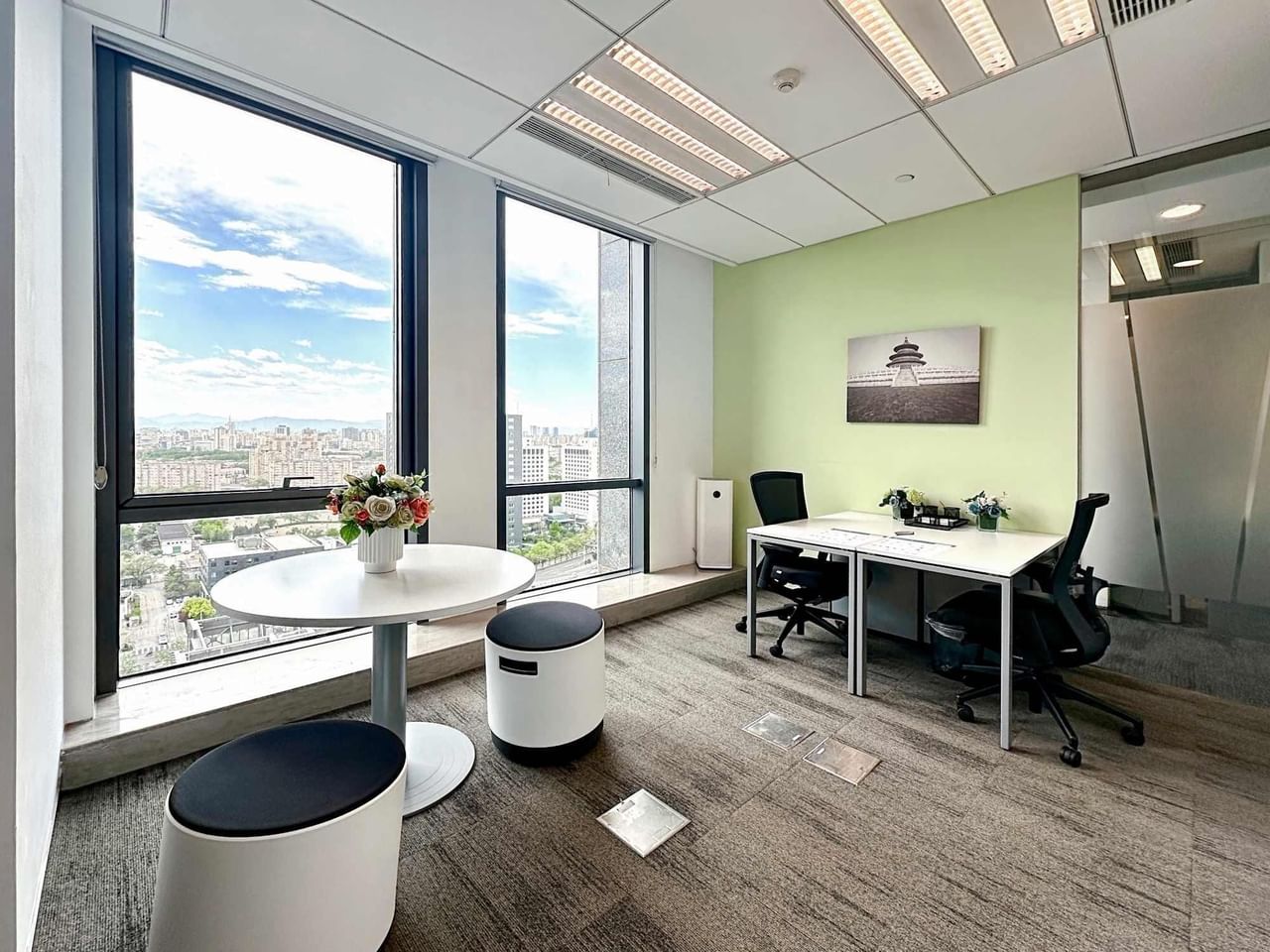 Reciba a sus clientes en un entorno luminoso y moderno, colabore en relajadas zonas de descanso y póngase al día con sus propuestas en la cómoda sala de negocios.
