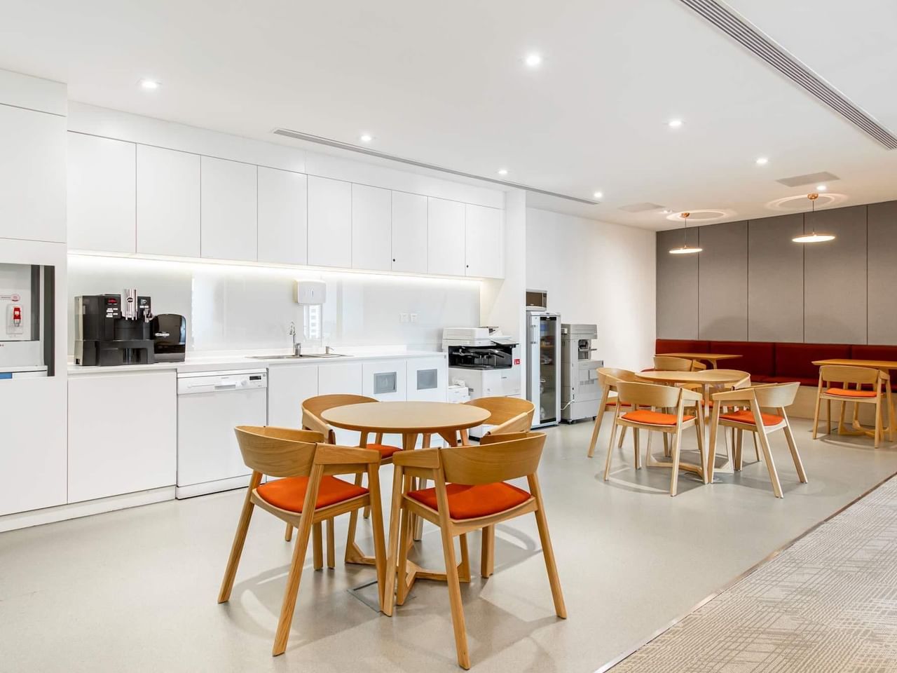 Trabaje en red en la cafetería y las zonas de descanso.