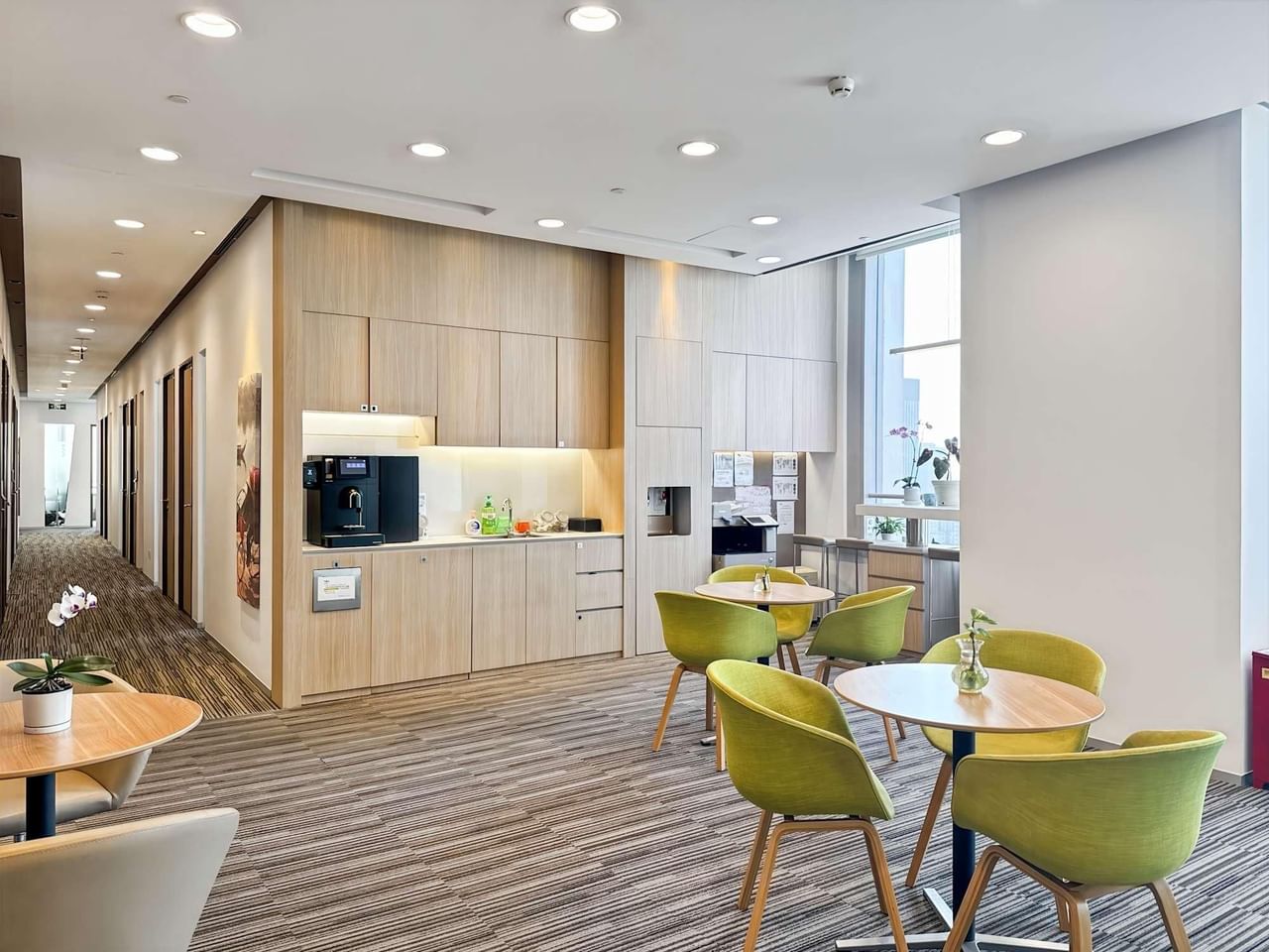 Además de tener acceso a WIFI, la posibilidad de reservar salas de reuniones y el acceso a zonas comunes, Regus International Finance Square tiene u ofrece: