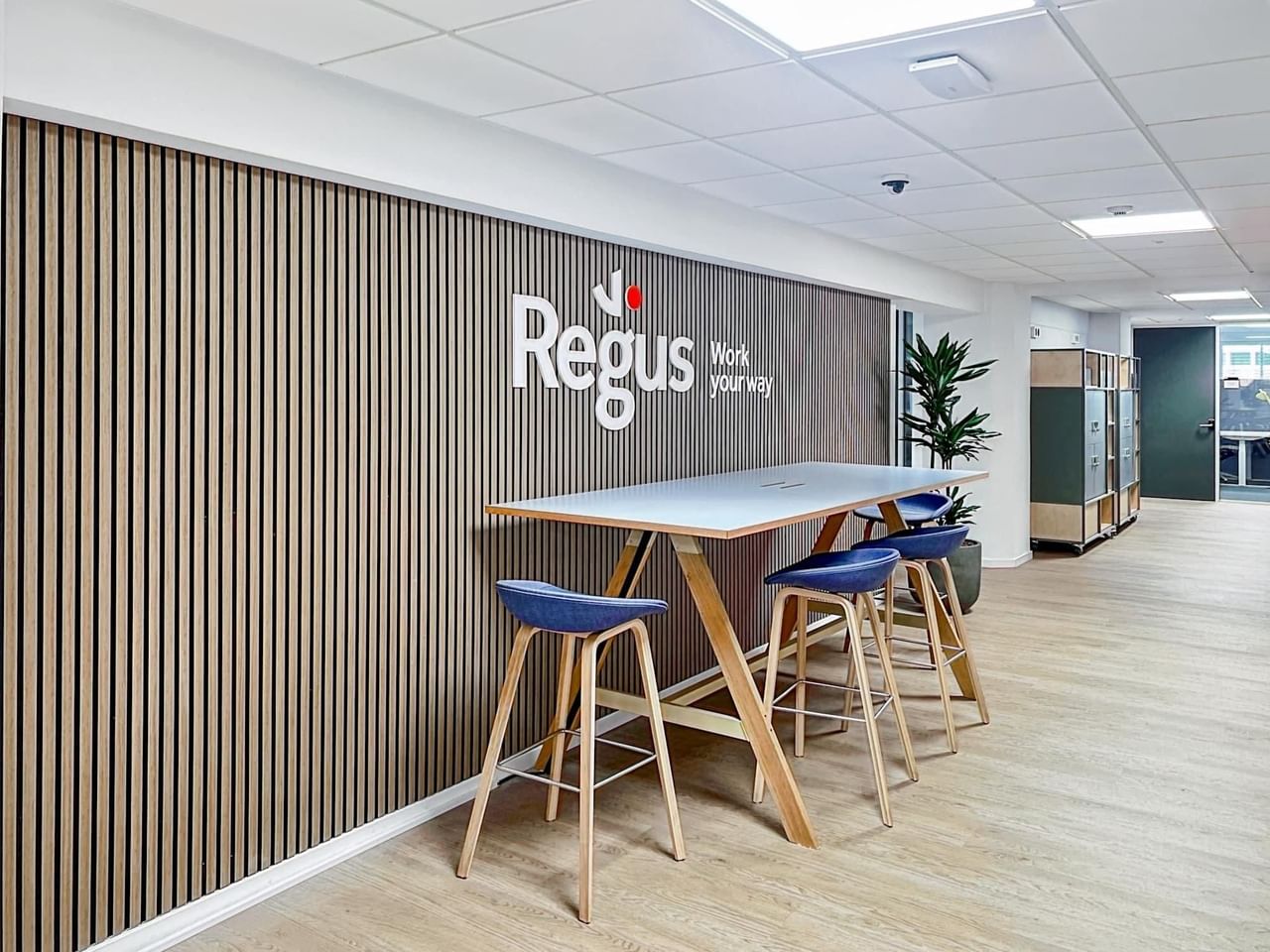 Reúnase con colegas y clientes en espacios de coworking totalmente amueblados y modernas salas de reuniones, que incluyen WiFi superrápido al alcance de su mano.