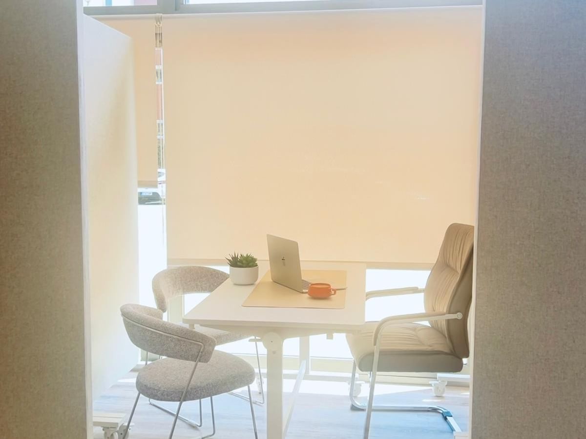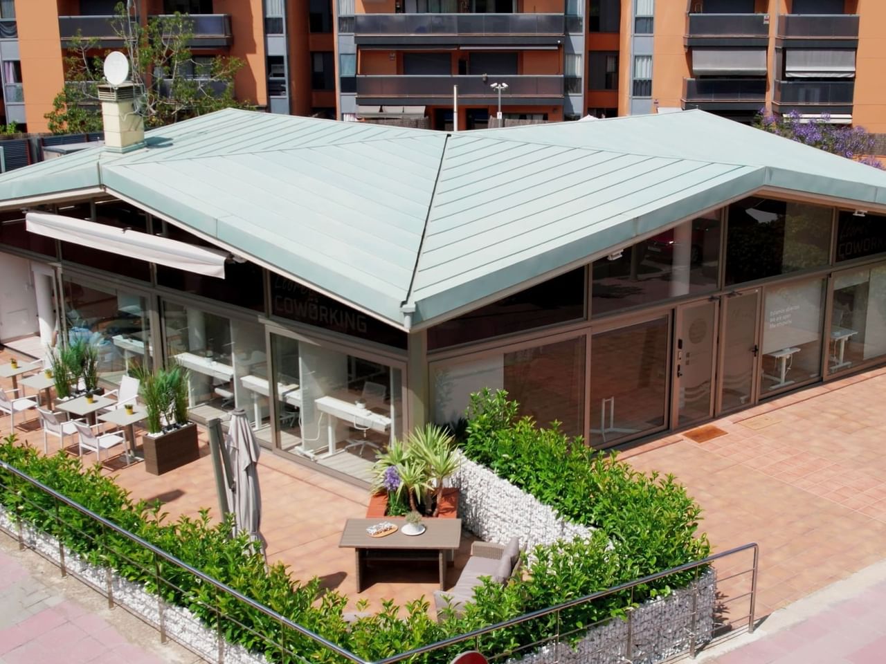 Espacio diáfano y luminoso con mesas regulables en altura y sillas ergonómicas, además de una amplia terraza para tus llamadas o descansos al sol.