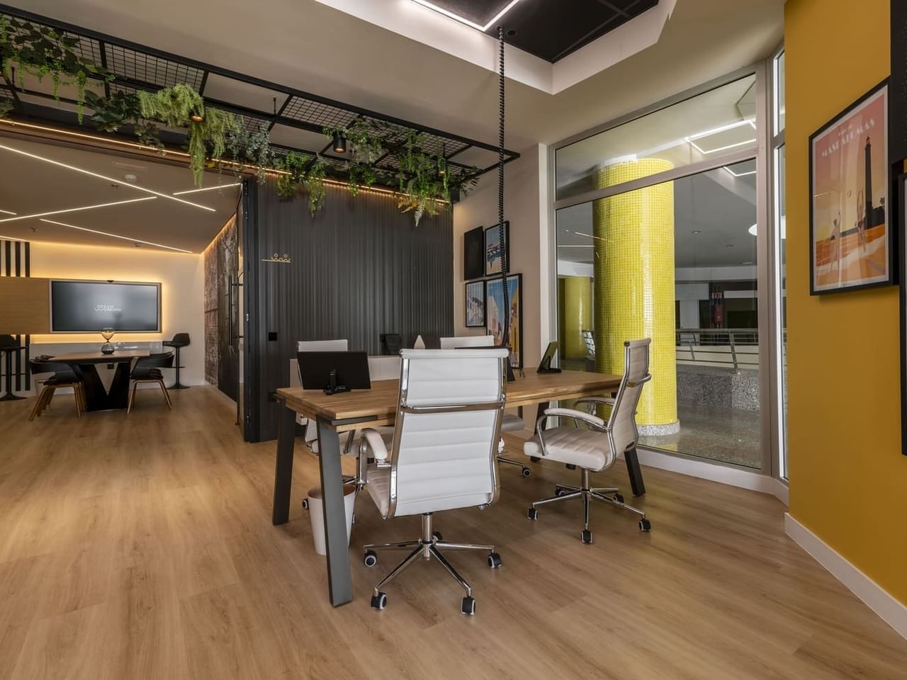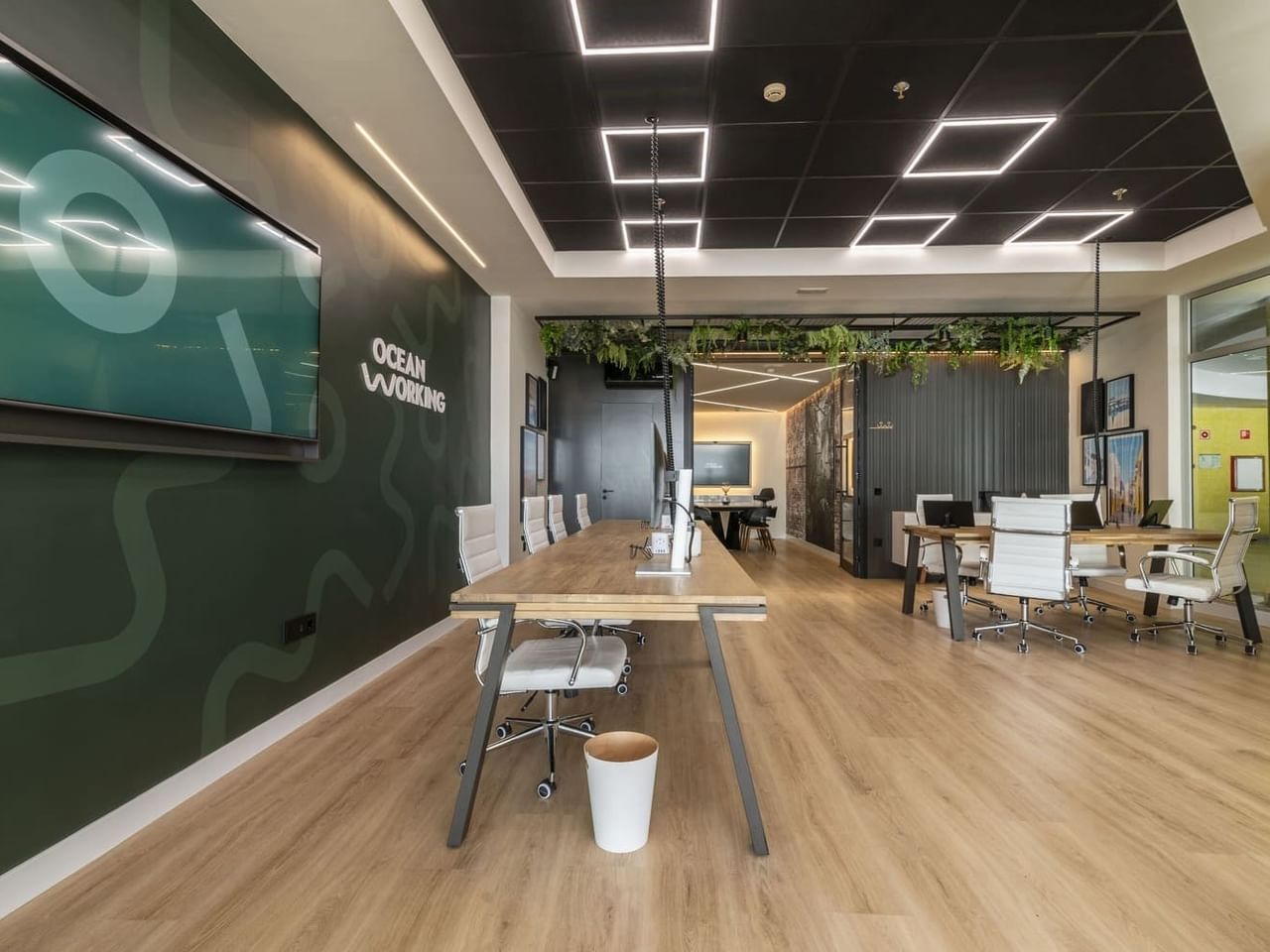 Además de tener acceso a WIFI, la posibilidad de reservar salas de reuniones y el acceso a zonas comunes, Oceanworking Coworking Meloneras tiene u ofrece: