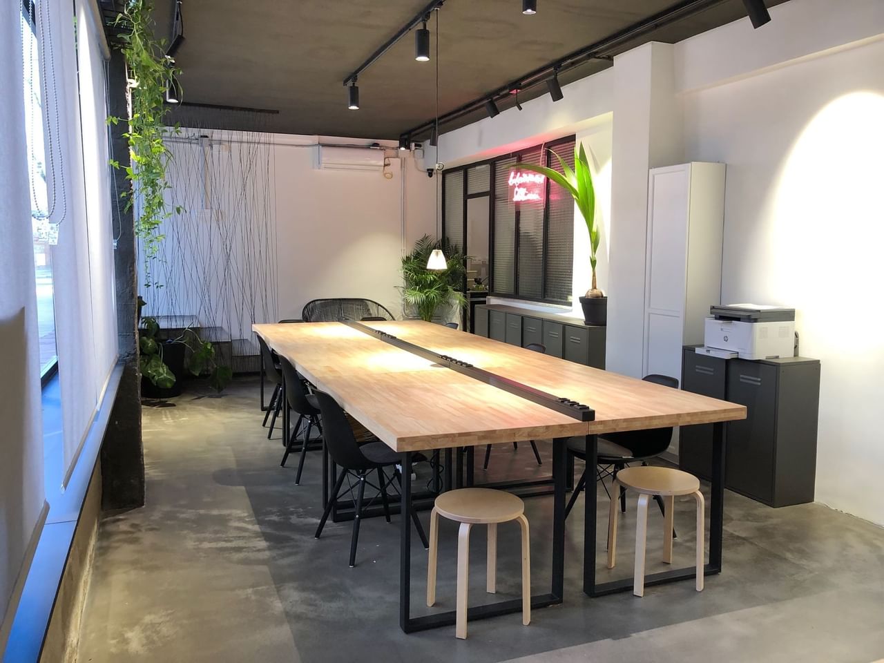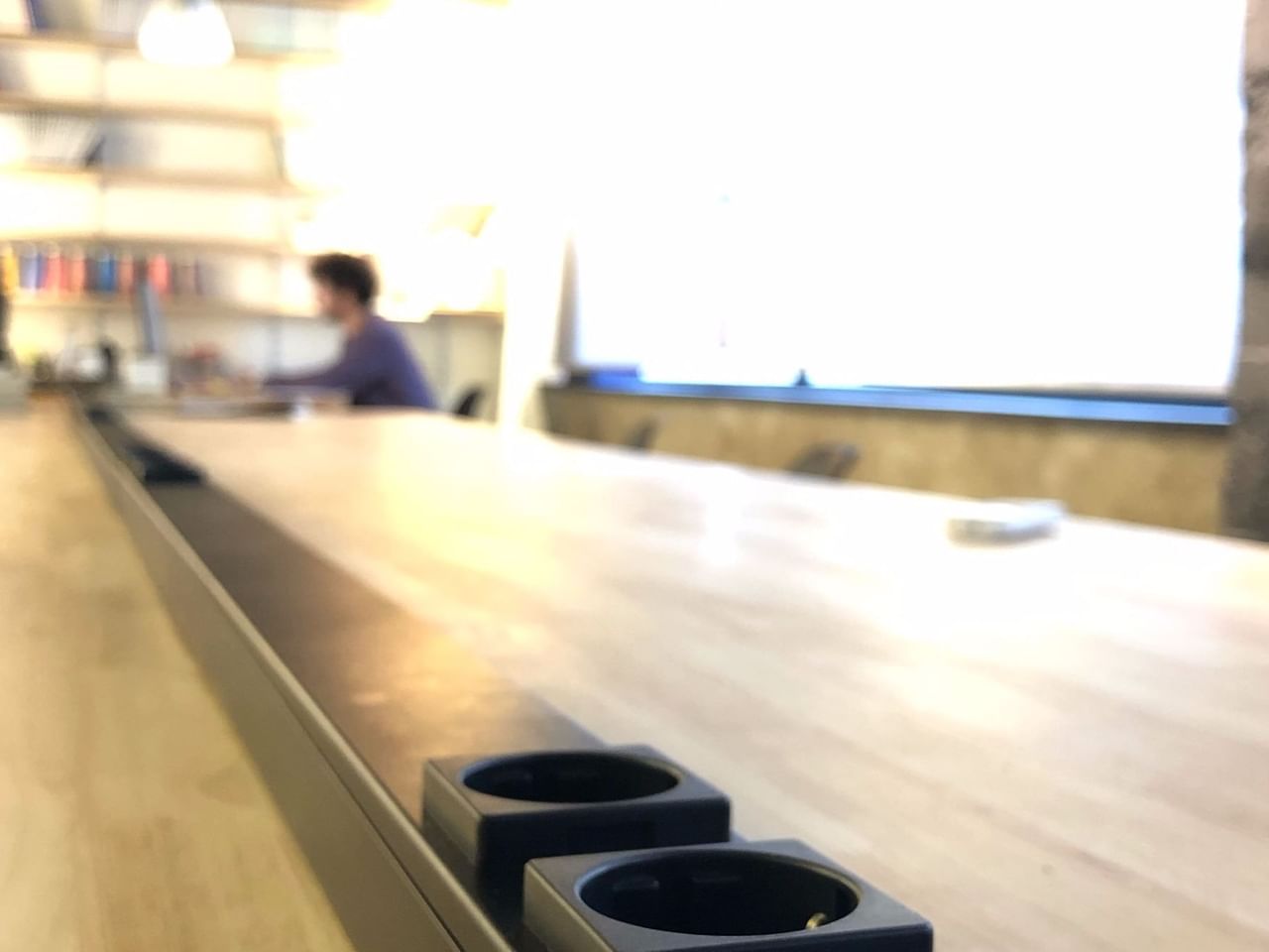 Cuenta con plazas para seis personas, acceso 24h, mesas amplias y un acogedor office con microondas, kettle, máquina de café de cápsulas y espacio para comer.