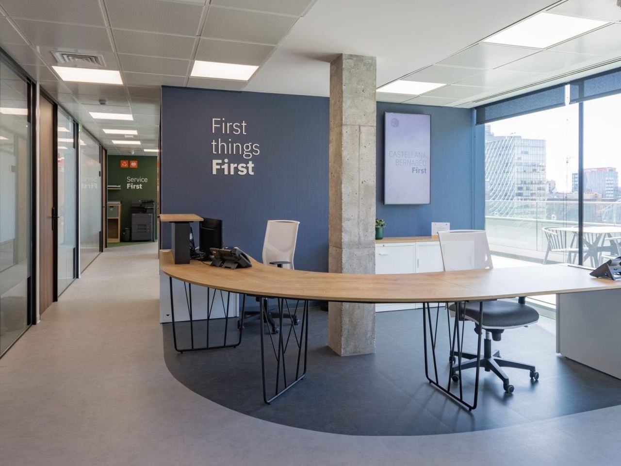 Castellana Bernabéu First es nuestra última incorporación, una ubicación única en la zona AZCA, en las plantas superiores de un edificio inconfundible para los madrileños. Y con una terraza sin igual para disfrutar del crecimiento de tu empresa en la mejor compañía.